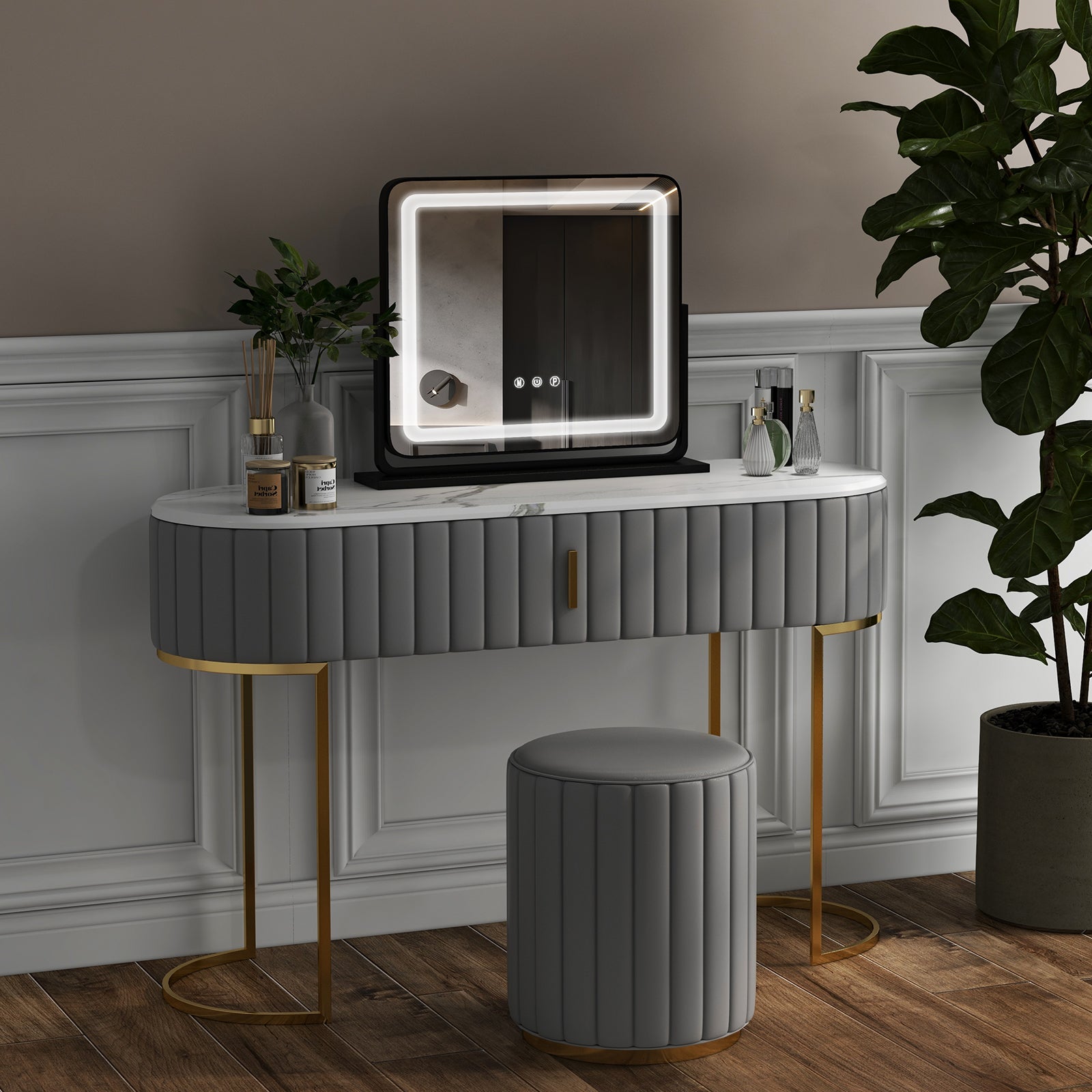 Sturdy Frame and Well-made Details: The solid aluminum frame and round corner design enhance stability and safety. In addition supported by a widened and stable metal stand the vanity mirror can be placed firmly on your dressing desk.