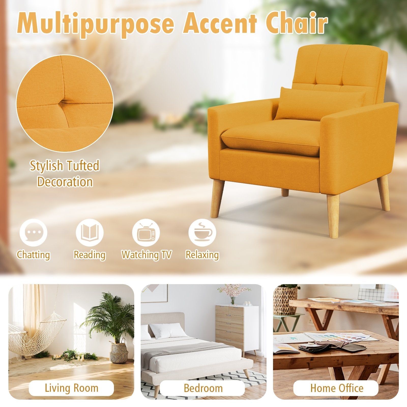 Accent Chair with Lumbar Pillow Natural Rubber Wood Legs Padded Cushions-Yellow