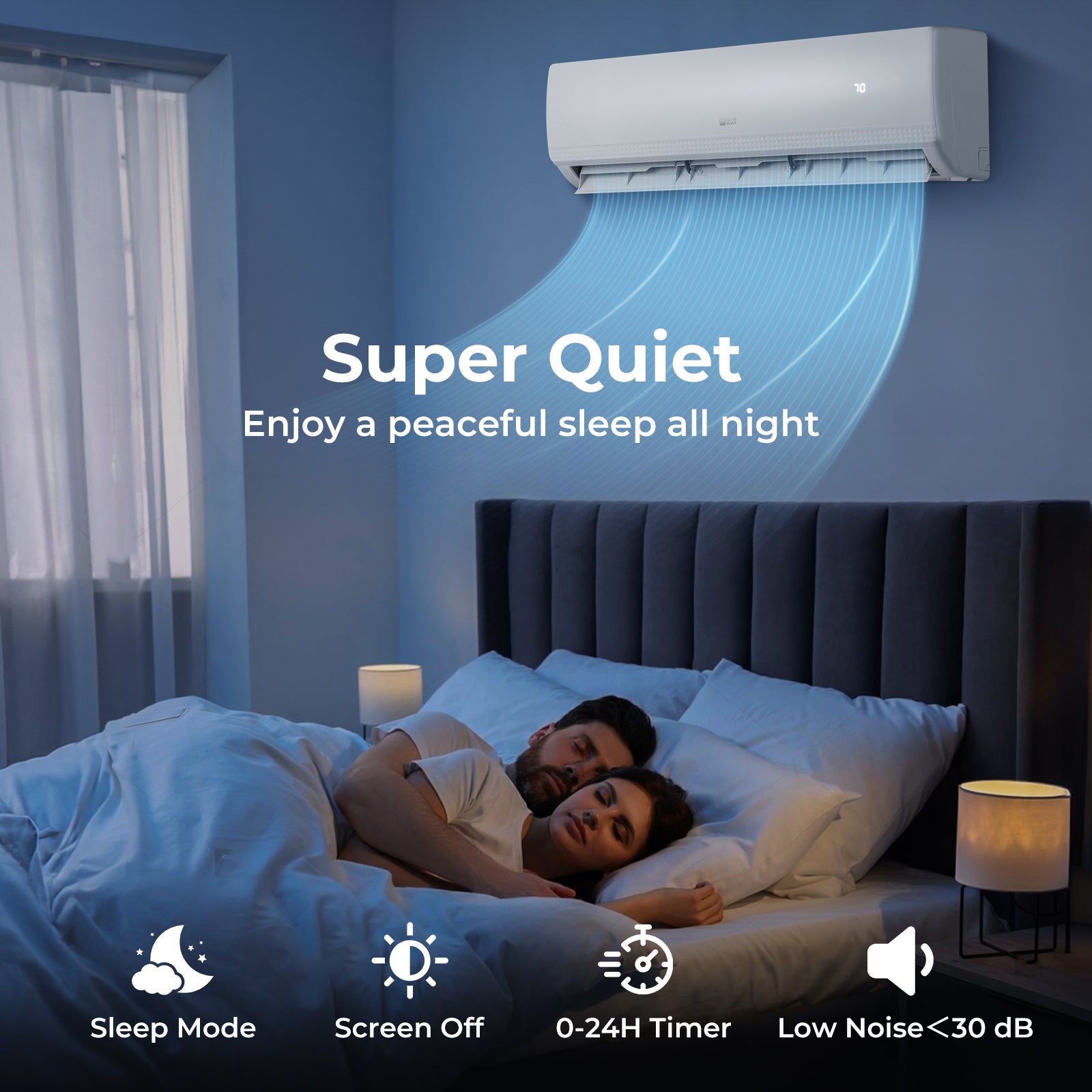 Super Quiet and Easy Maintenance: With the low noise sleep mode (<30 dB) 0-24h timer and screen off function you and your family can enjoy a peaceful sleep all night. Moreover the air conditioner features 133℉ high temperature self-cleaning and removable and washable filter allowing you to breathe fresher and cleaner air. Please note: it requires installation by a professional HVAC Installer.