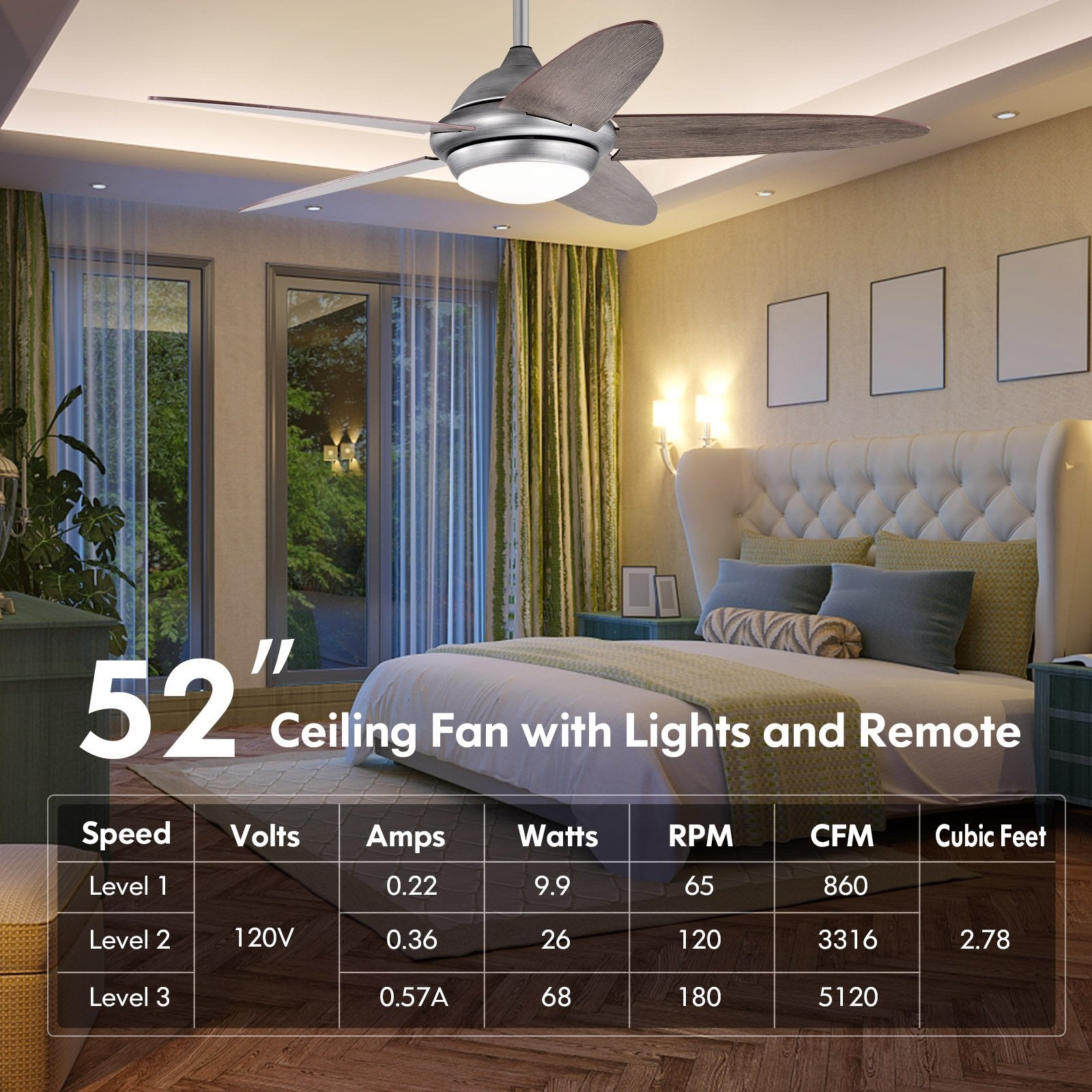 52 Inch Ceiling Fan with Lights and 3 Lighting Colors-Silver Gray