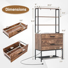 Freestanding File Cabinet with Charging Station and 3-Tier Open Shelves-Rustic Brown