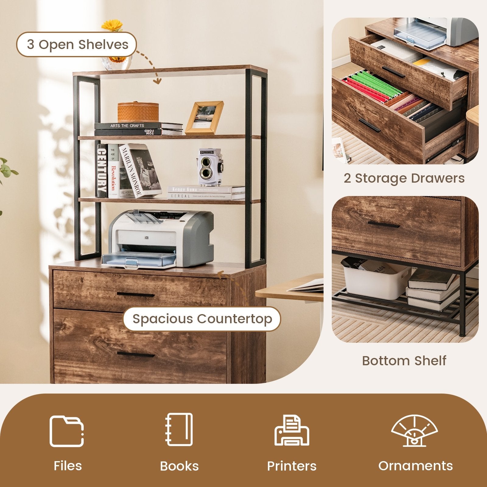 Ample Storage Space: This file cabinet features a 3-tier bookshelf a printer countertop 2 storage drawers and a bottom shelf providing various storage options. It can keep your work supplies neatly organized and within easy reach.