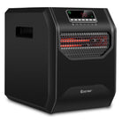 This heater features 6 metal wrapped quartz infrared elements which has a washable air filter and uses up to 1500-Watts. There are 3 heating settings including an Eco setting that will heat smaller areas to 68 degrees. The lightweight heater design with integrated carry-handle which makes it easy to carry from room to room to enjoy the benefits of zone heating. This compact heater also includes a remote control providing more portability. Timer settings can be used to turn on or off the heater up to 12 hours ahead.