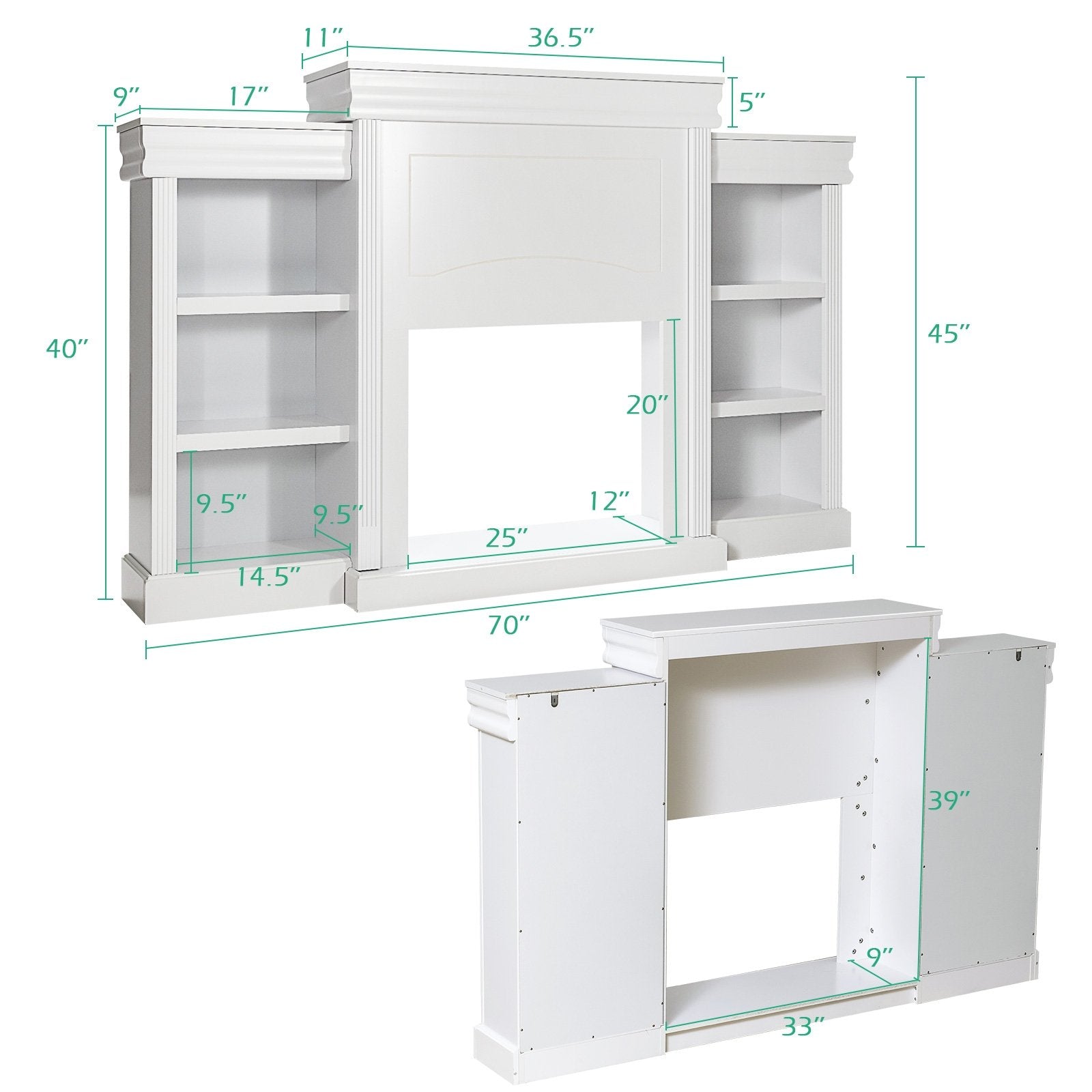 70 Inch Modern Fireplace Media Entertainment Center with Bookcase-White