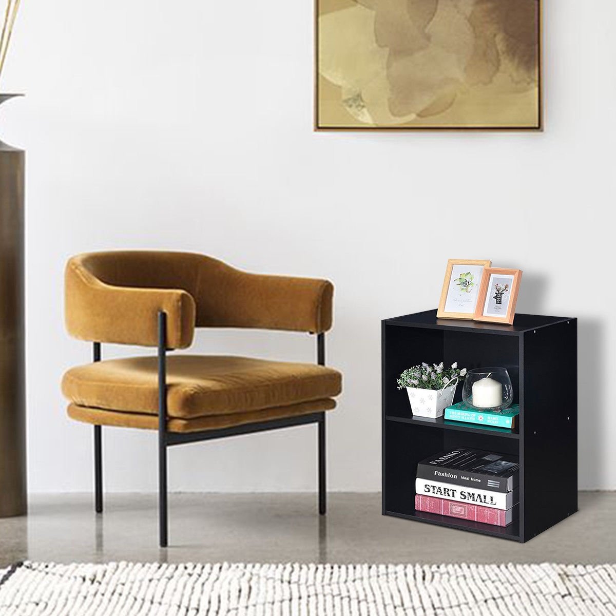 With the storage cabinet with a 2-layer large open storage space you can store your books CDs DVDs vases photo frames decorations and collectibles. The most important thing is that it is composed of MDF veneer material and composite wood structure. The base is stable and the structure is firm. Therefore its load-bearing capacity is very strong and can be used for a long time. Due to the smooth surface you can easily wipe the stain with a damp cloth. And it's fixed with screws so you can assemble it quickly and easily. So it is the perfect complement to your home!