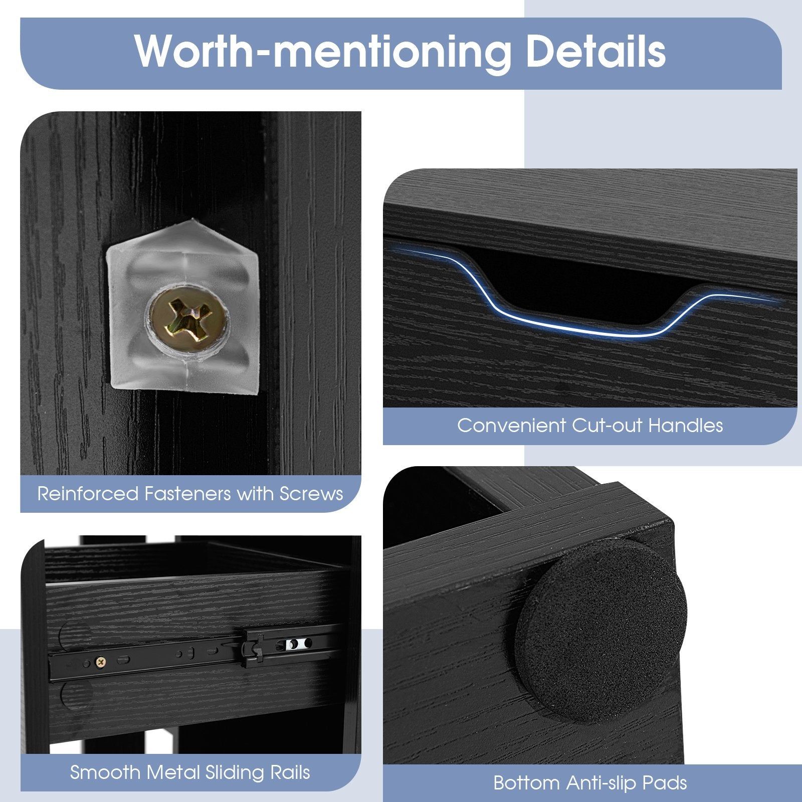 -Smooth cut-out handle and metal sliding rails on drawer for easy accessibility