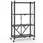 4-Tier Foldable Storage Shelf Collapsible Storage Rack with Lockable Wheels-Black