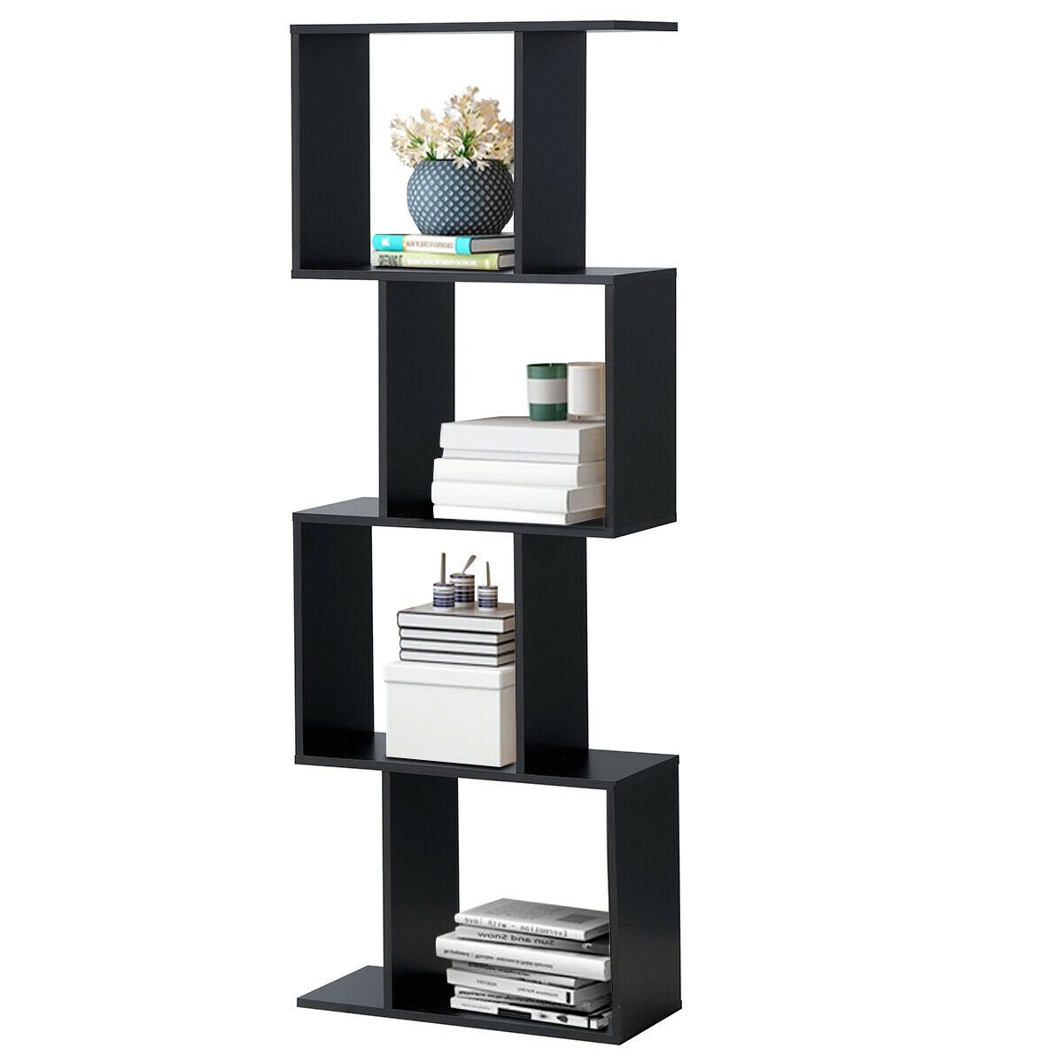 2/3/4 Tiers Wooden S-Shaped Bookcase for Living Room Bedroom Office-4-Tier