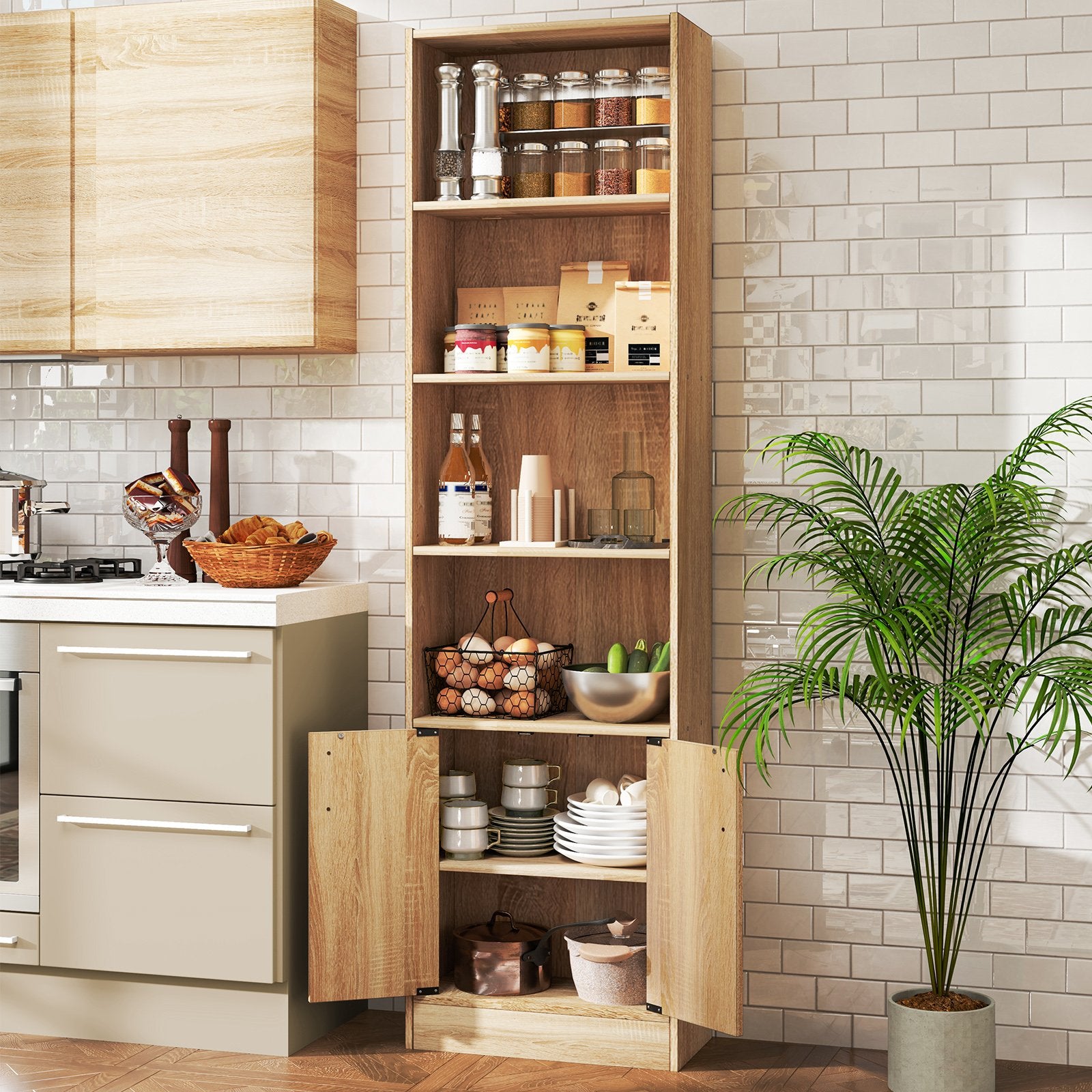 71 Inch 6-Tier Tall Bookshelf with Double Doors 4 Open Cubes-Oak
