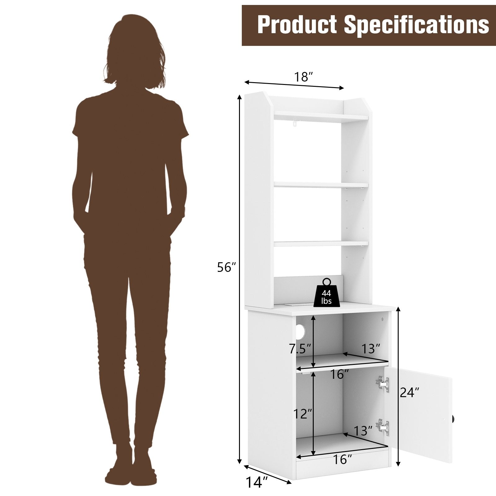Quality Materials and User-friendly Details: Made of high quality MDF this storage cabinet has a solid structure. The table top can hold 44lbs while each shelf can hold 22lbs. The bottom cabinet has a convenient handle and flexible hinges facilitating your access to items. Besides the cabinet also have anti-toppling device that can help you to fix the cabinet to the wall.