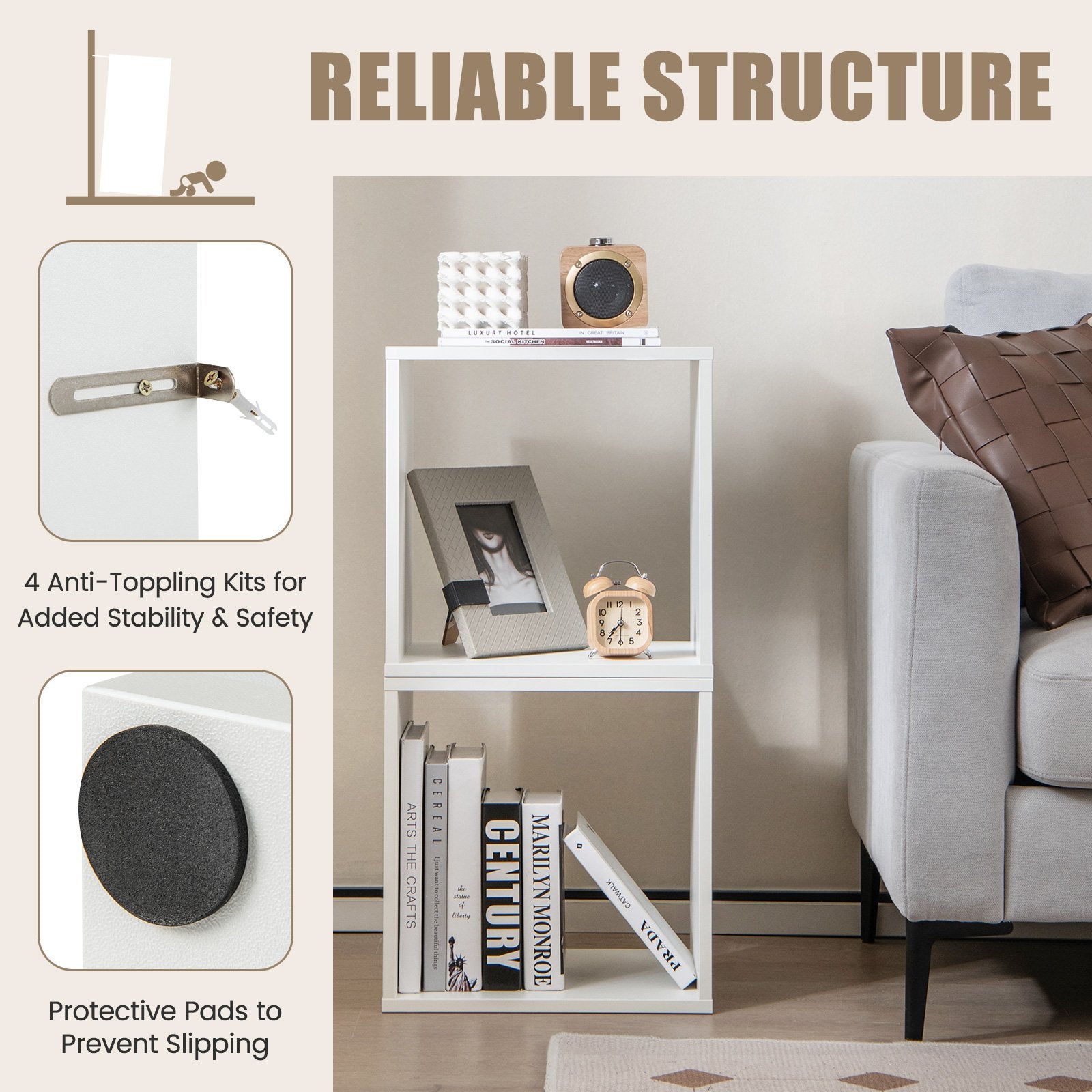 Reliable Structure: Built with durability in mind each cube organizer is made of high-quality engineered wood with thickened edge-sealing that can withstand years of use. The open bookcases are equipped with 4 anti-toppling kits for added stability and safety when stacked.