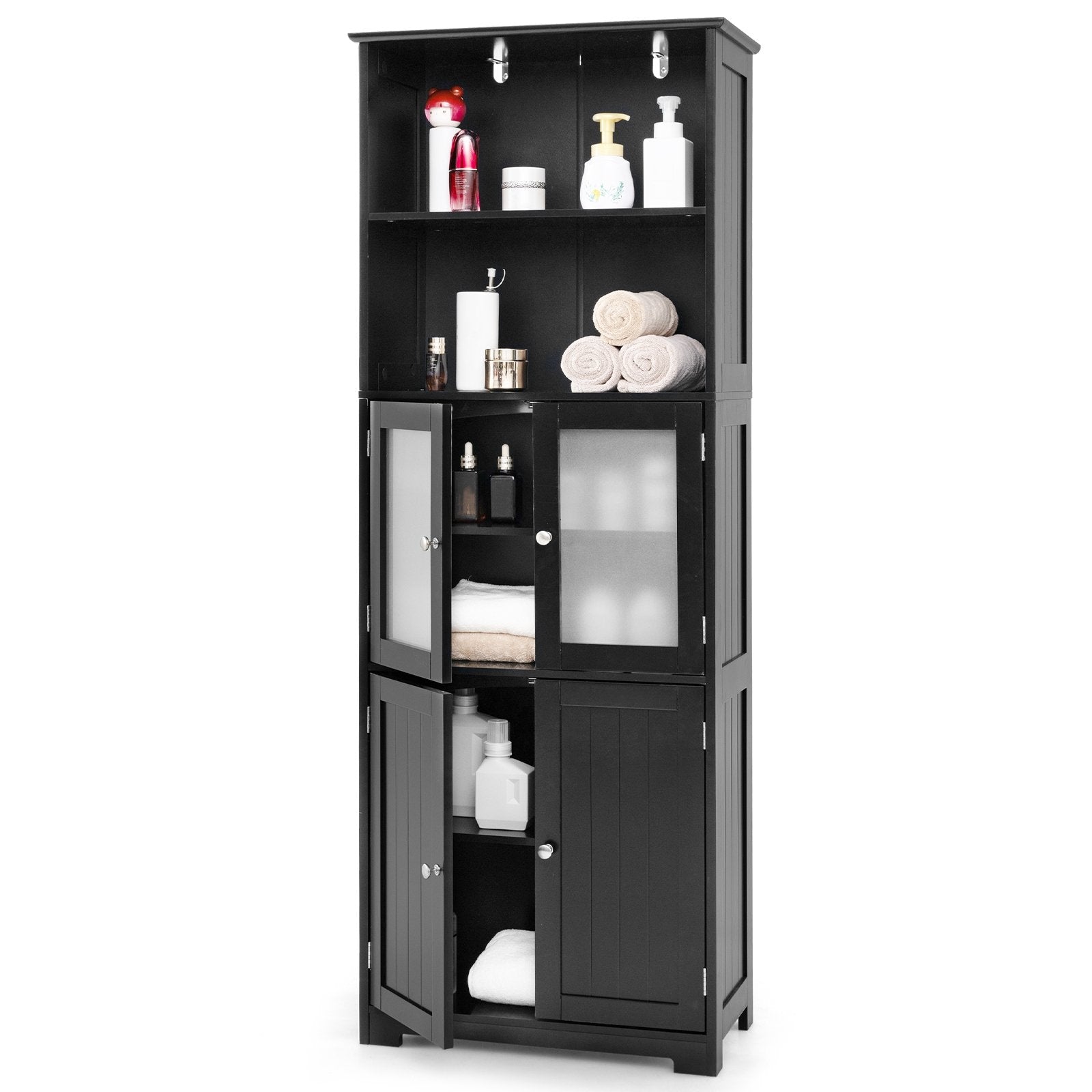 6-Tier Enclosed and Open Storage Space: Equipped with 2-tier open storage shelves and 2 cabinets with doors this tall bathroom storage cabinet offers large storage space to keep various items well organized. Besides there are two 3-position adjustable shelves that allow you to customize interior storage space as you need.