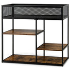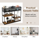 4-Tier Industrial Console Table with Wire Basket and shelf-Rustic Brown
