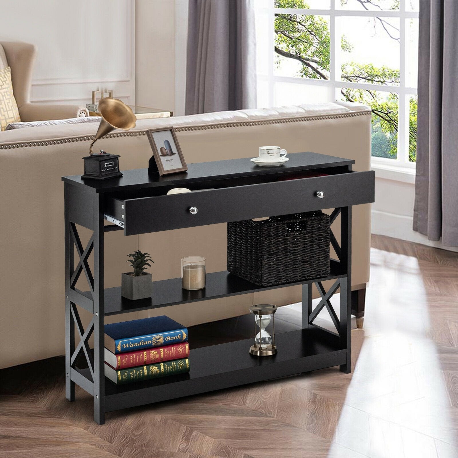3-Tier Console Table with Drawers for Living Room Entryway-Black