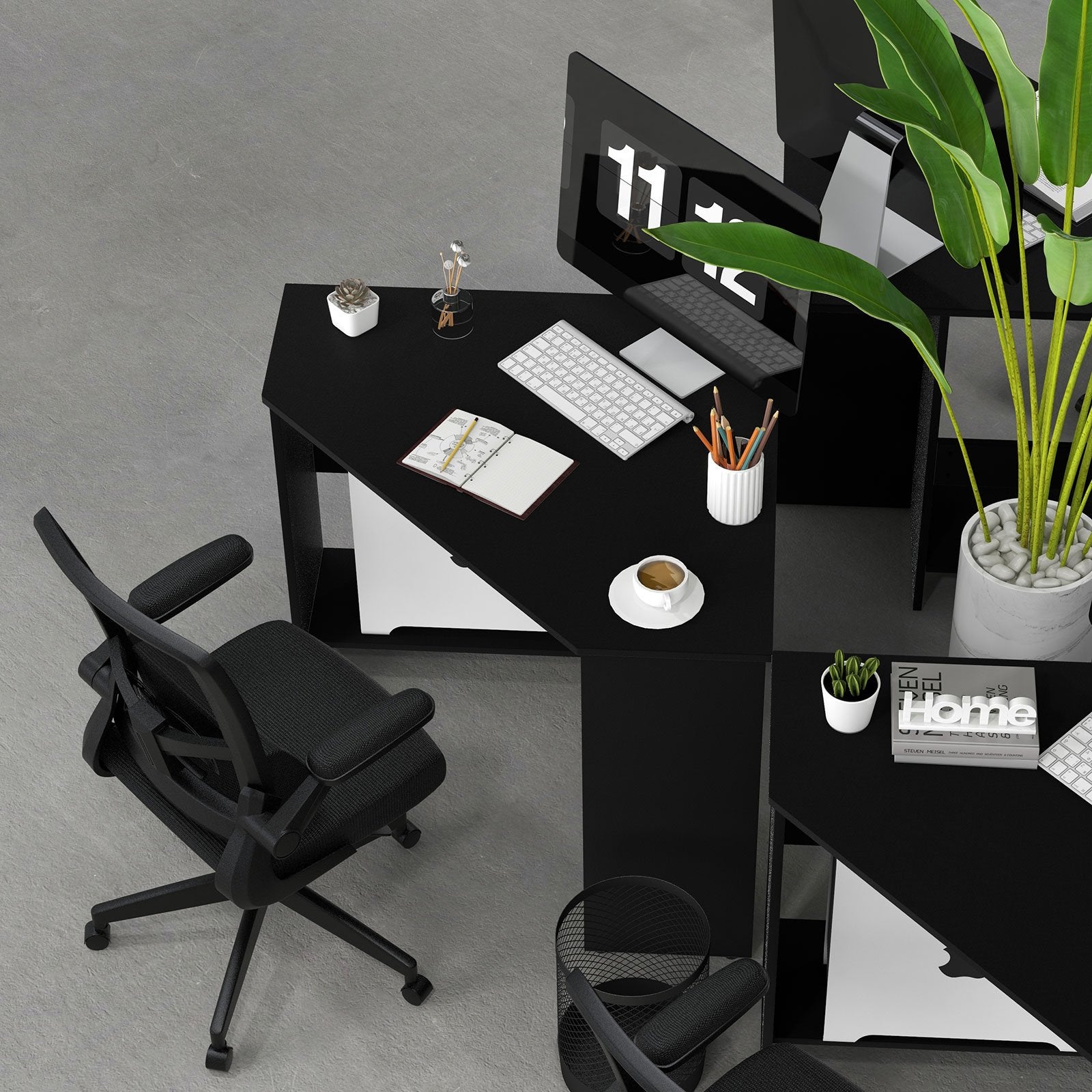 Corner Computer Desk Triangle Writing Workstation with Storage Shelf-Black
