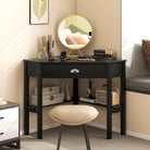 Corner Wooden Piece Laptop Computer Desk-Black