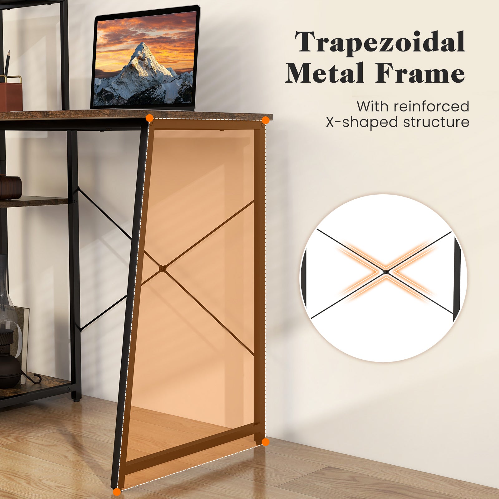 Computer Desk with Shelves and 3-Tier Storage Bookshelf-Brown