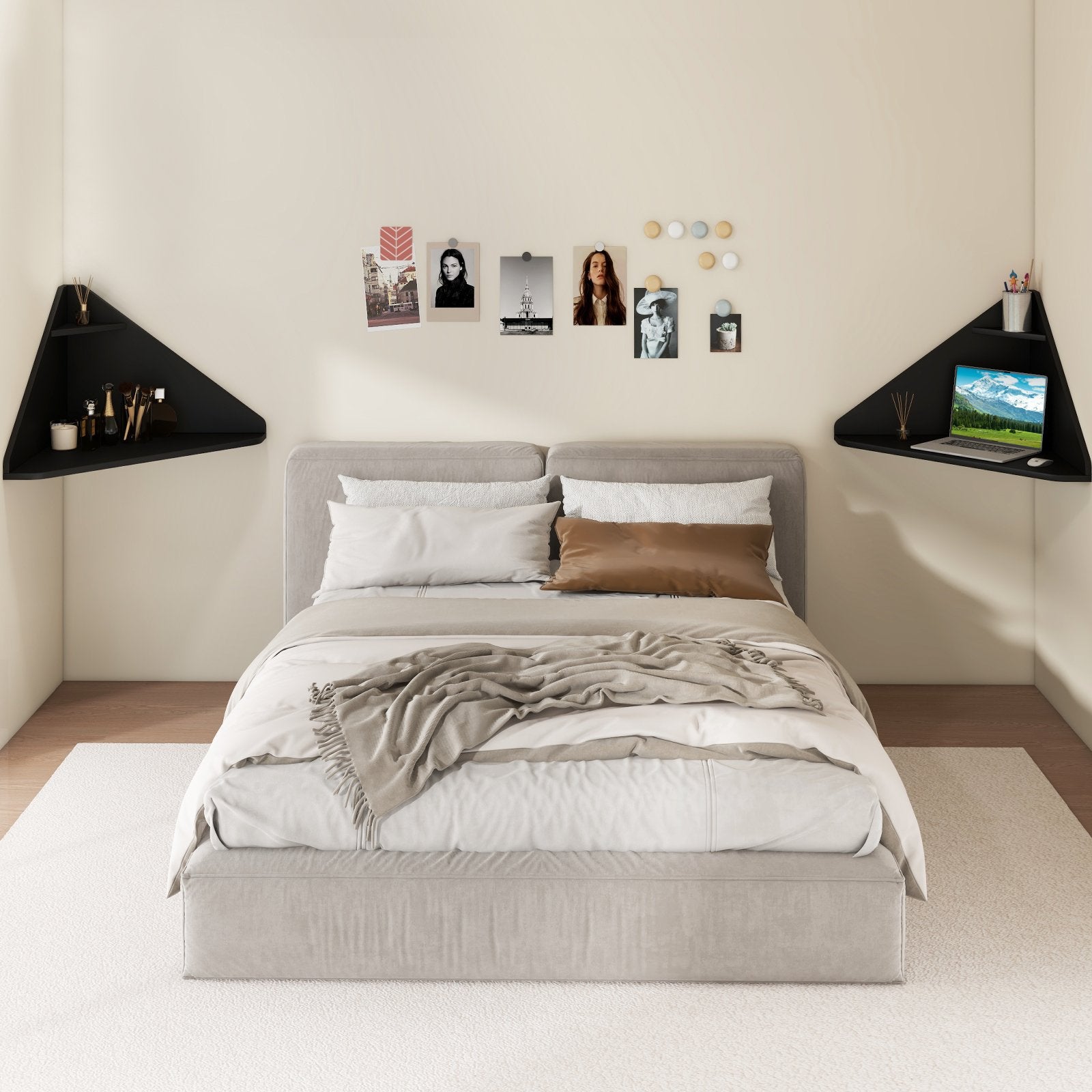 Space-Saving Corner Desk: This computer desk features a triangle shape allowing it to fit snugly in any corner of your room. Its floating design not only saves floor space but also contributes to a cleaner and more organized look.