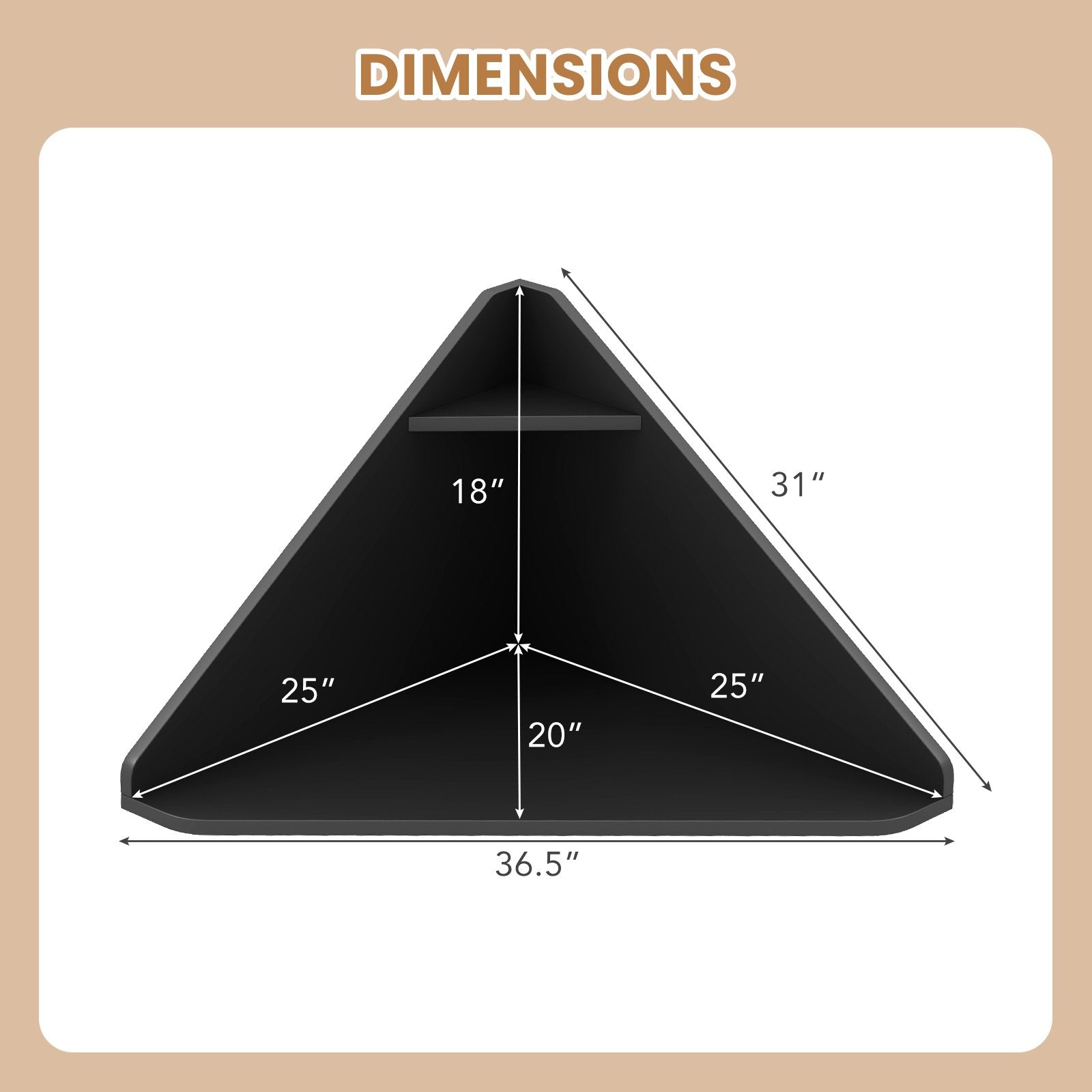 Floating Triangular Corner Computer Desk with Storage Shelf-Black