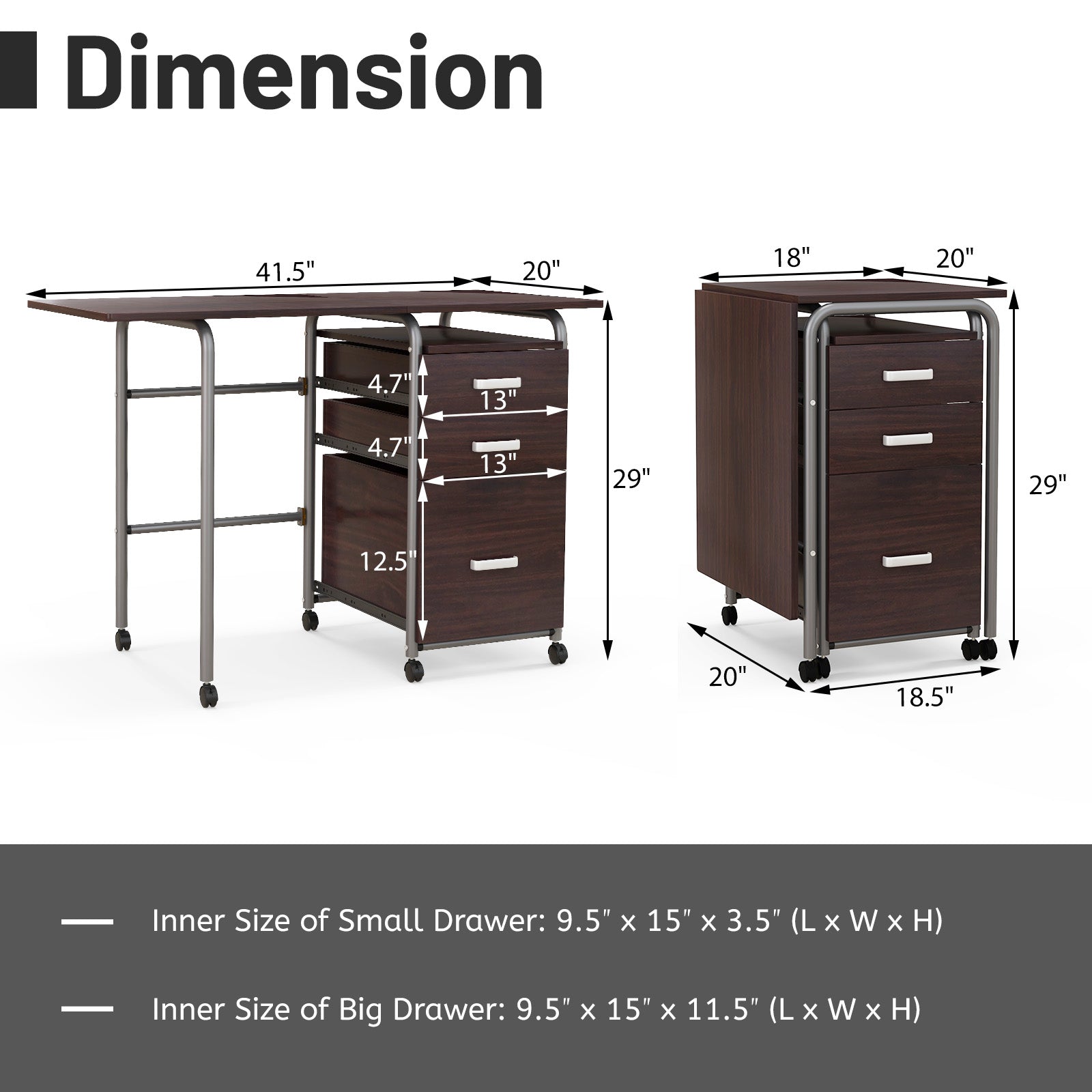 Folding Computer Laptop Desk Wheeled Home Office Furniture-Brown