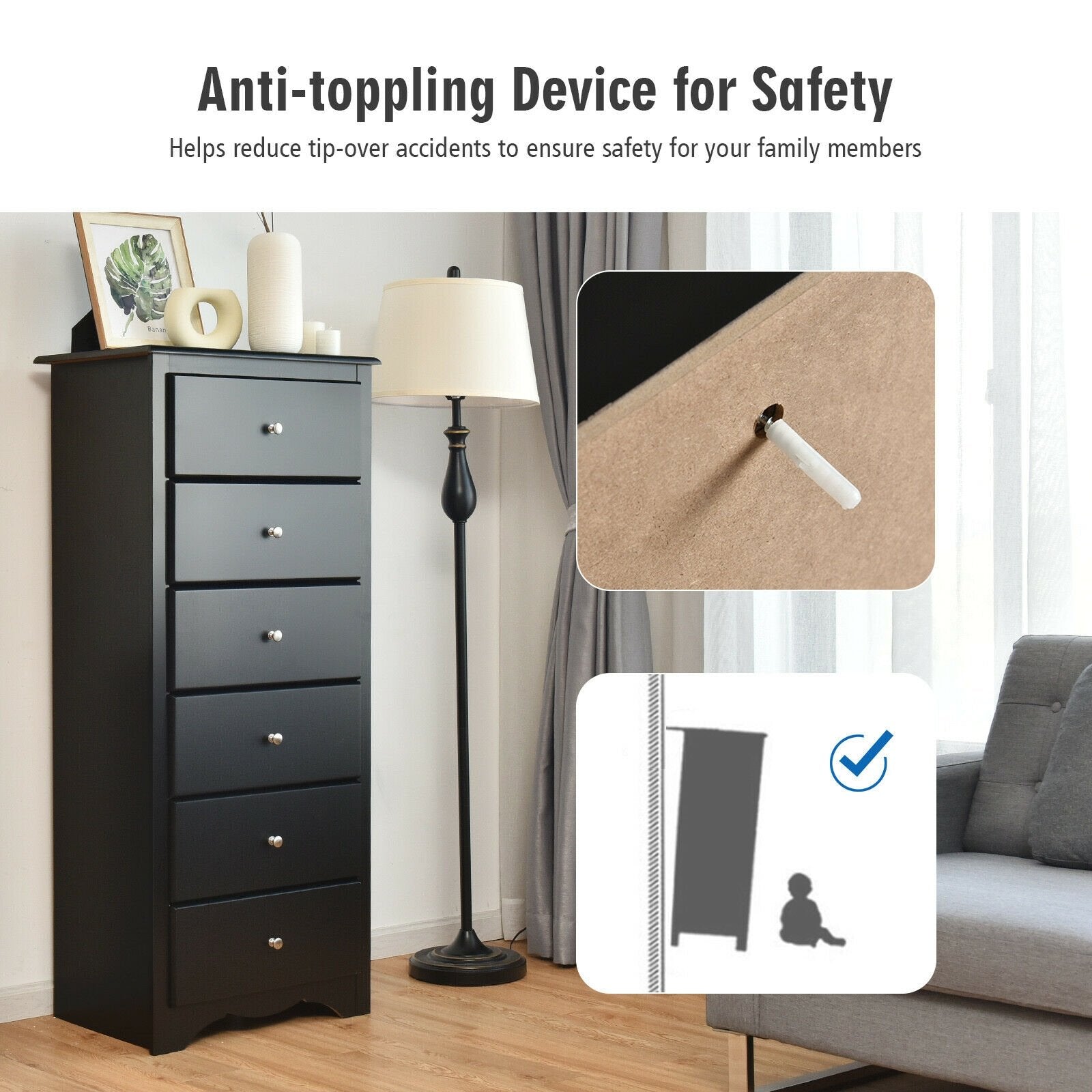 6 Drawers Chest Dresser Clothes Storage Bedroom Furniture Cabinet-Black