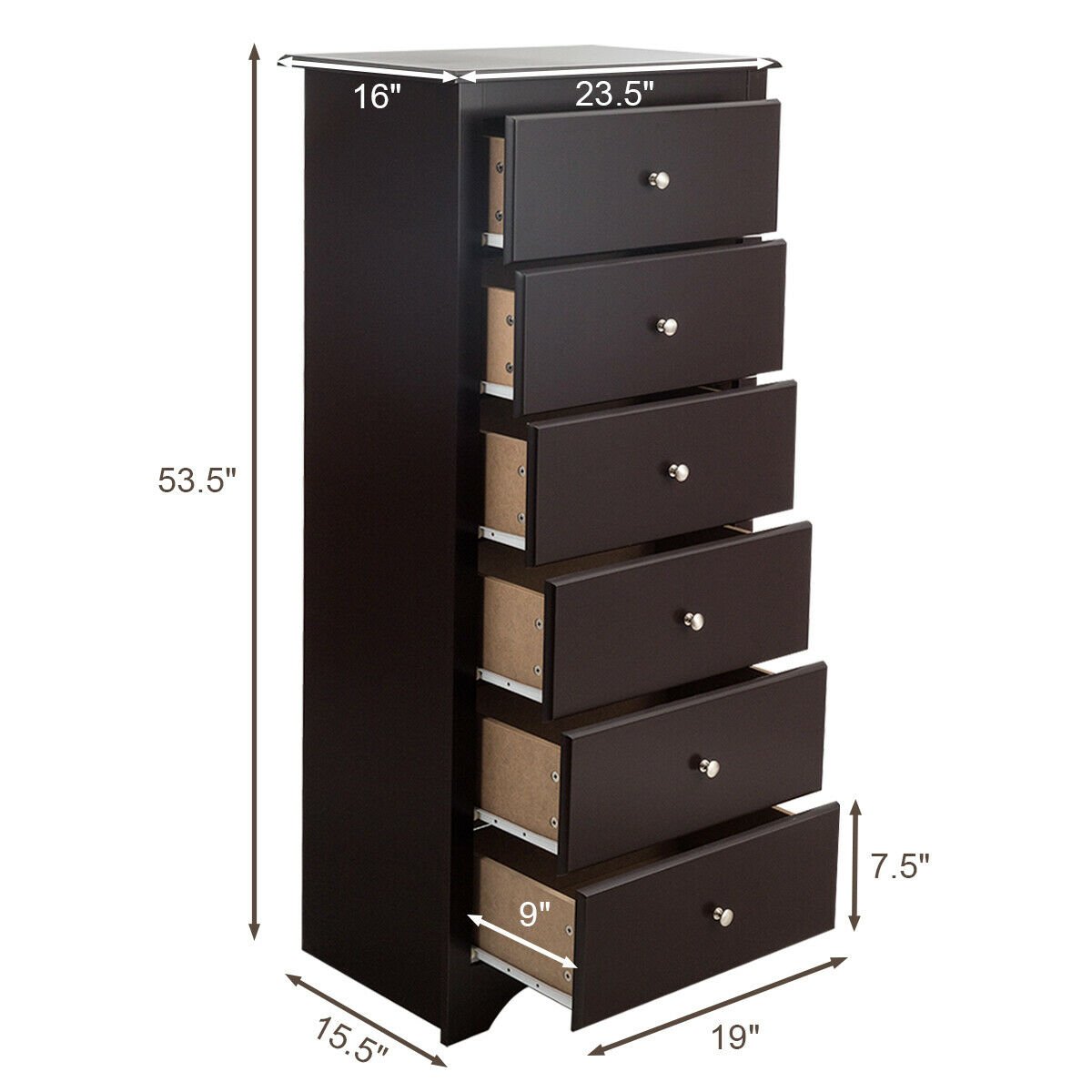 6 Drawers Chest Dresser Clothes Storage Bedroom Furniture Cabinet-Brown