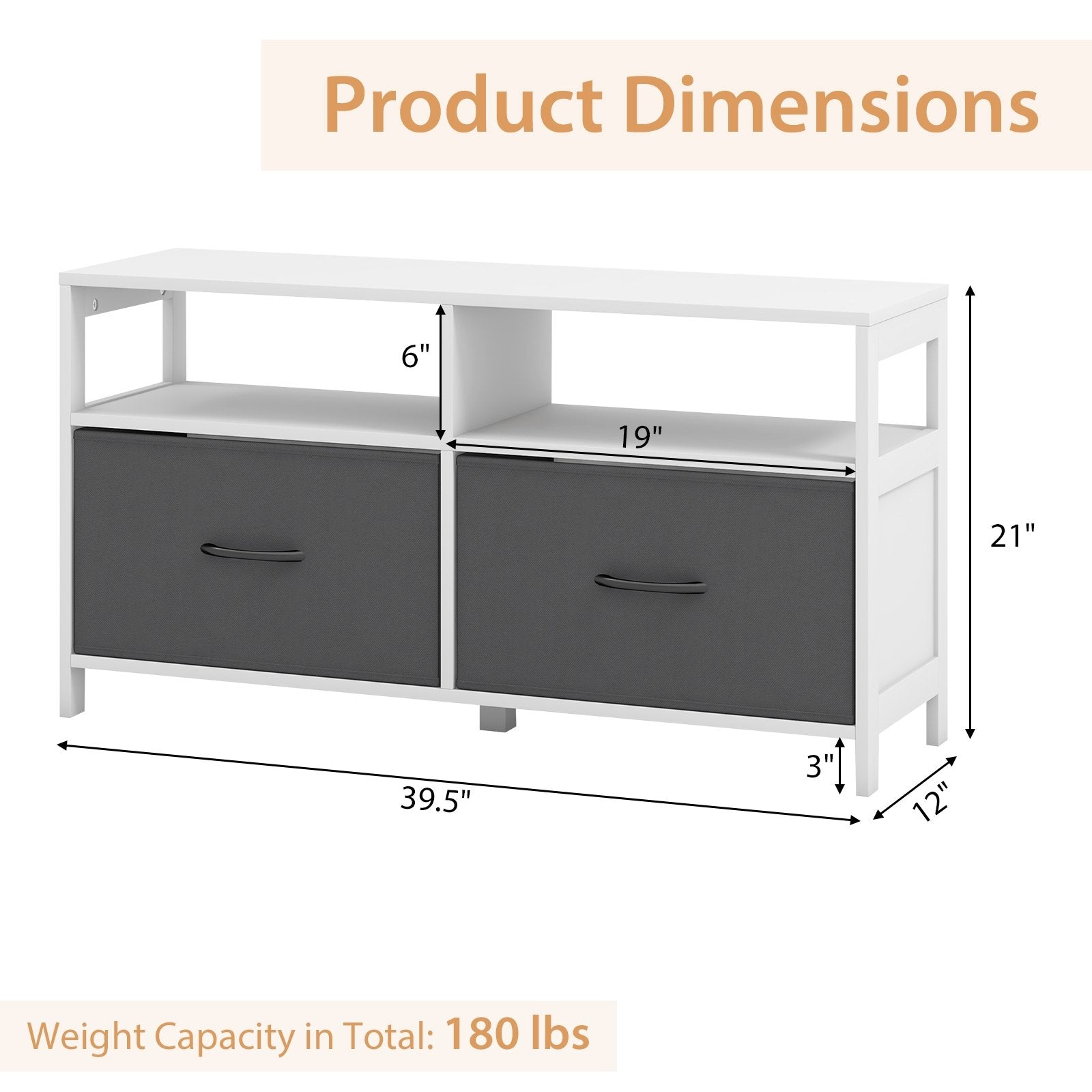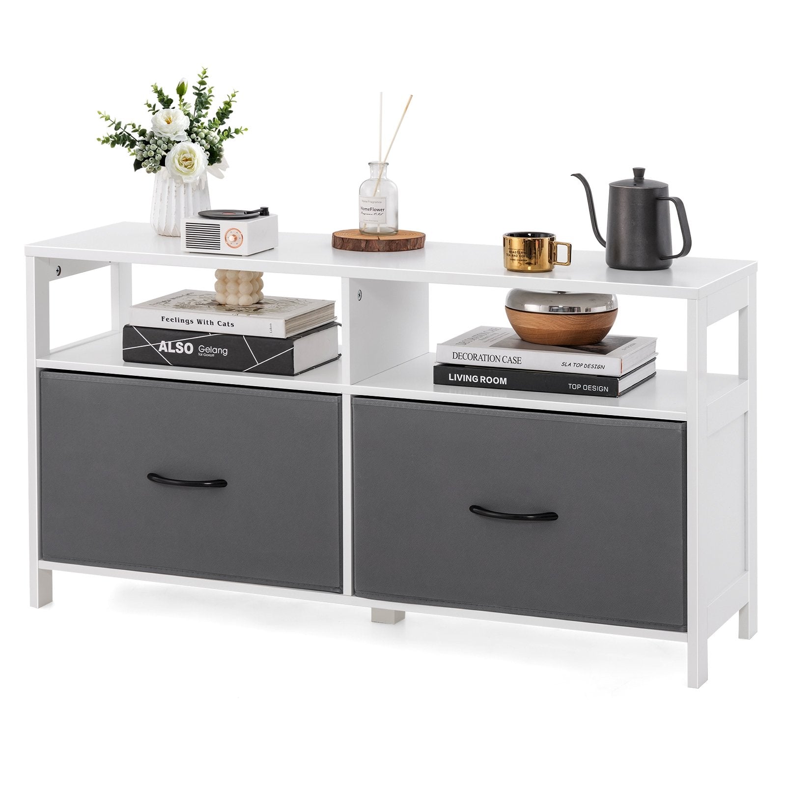 Fabric Chest of Drawers with 2 Drawers and 2 Open Shelves-White