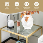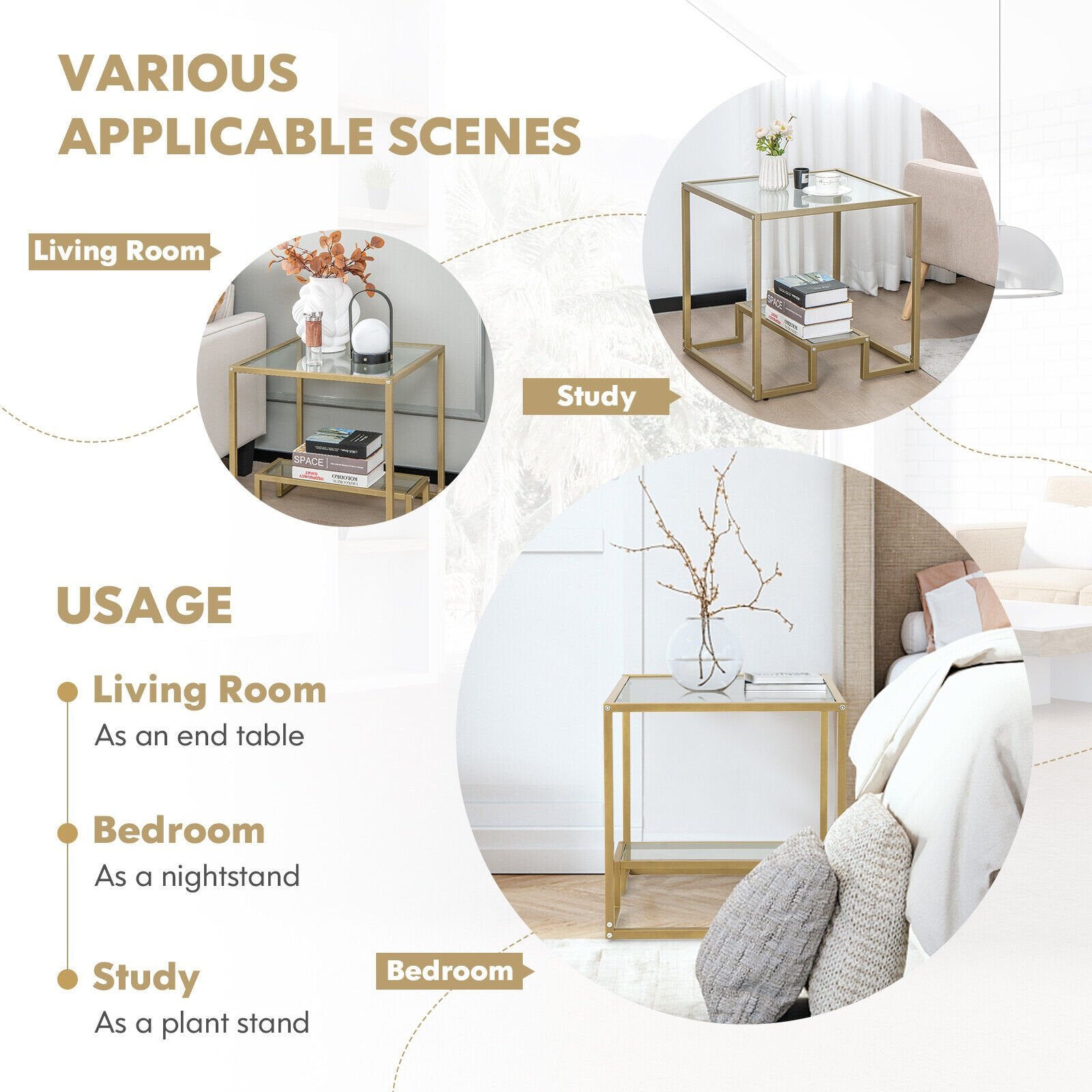 22 Inch 2-Tier Square Sofa Side Table with Tempered Glass Tabletop-Bronze