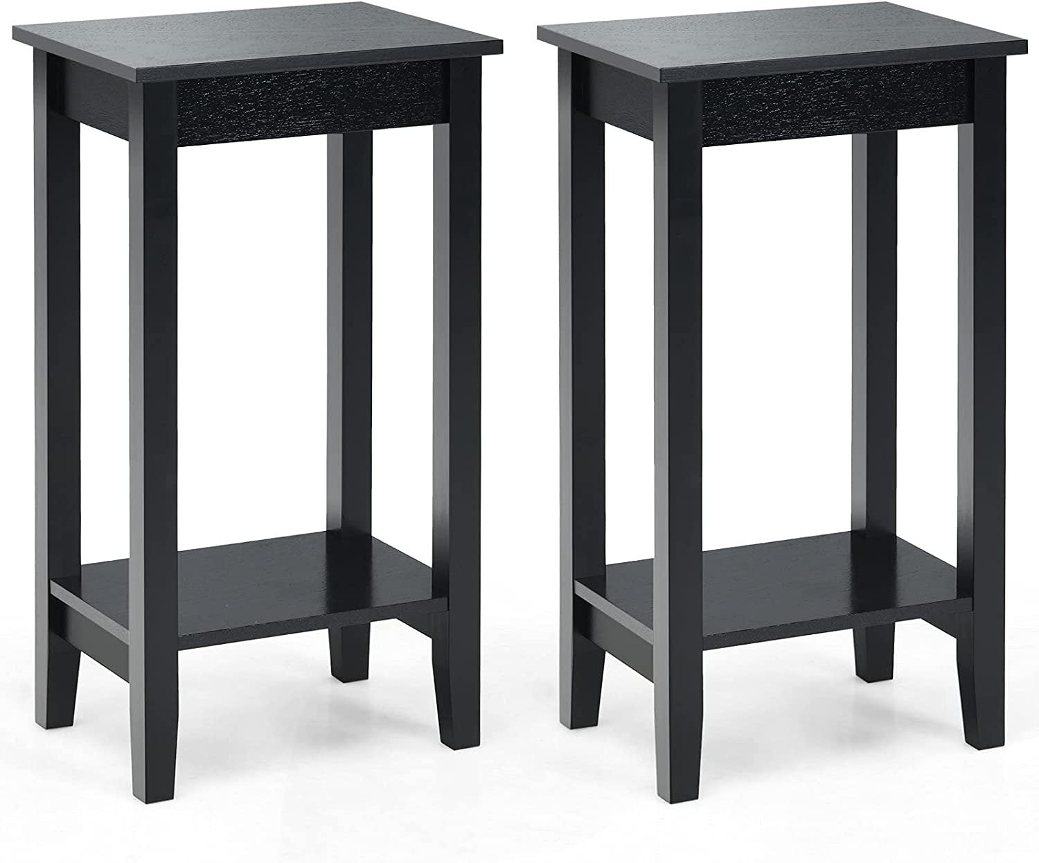 Set of 2 Versatile 2-Tier End Table with Storage Shelf-Black