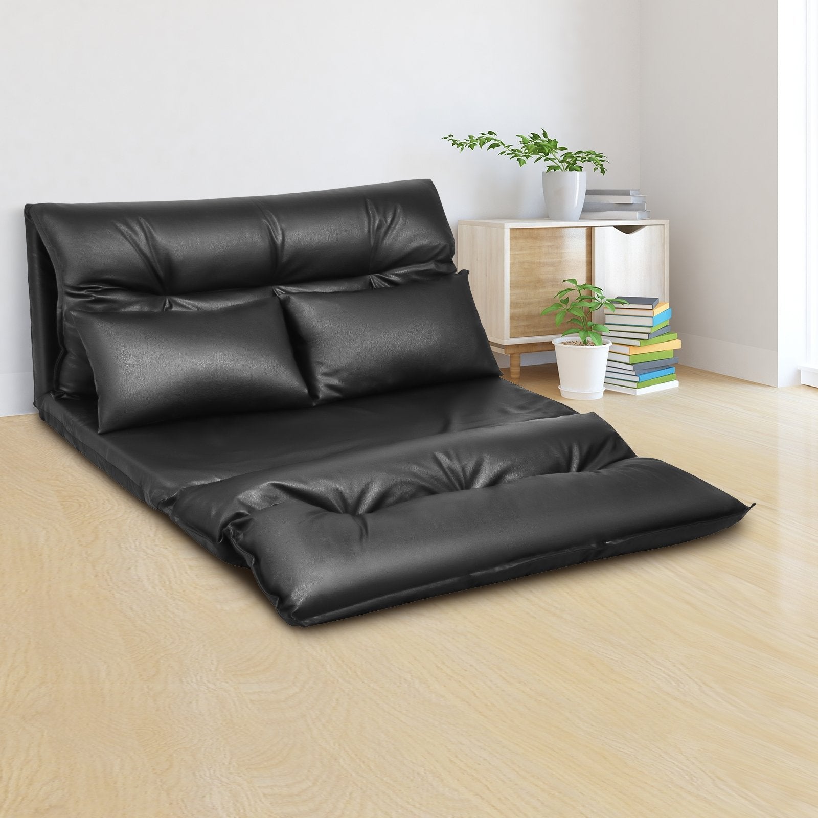 Foldable PU Leather Leisure Floor Sofa Bed with 2 Pillows-Black