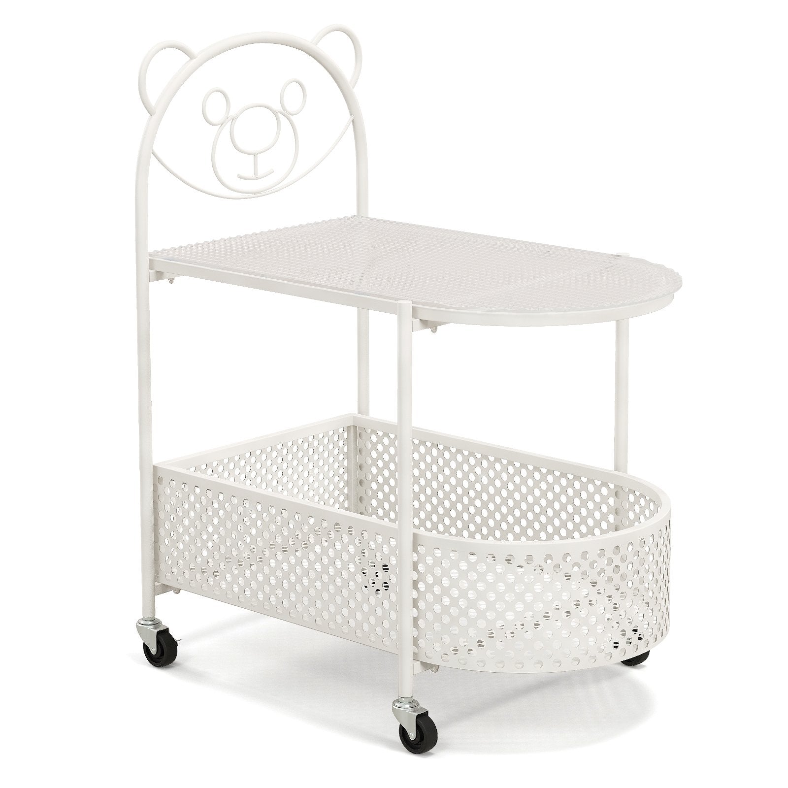 2-Tier Mobile Glass Coffee Table with Bear Pattern-White