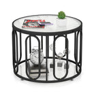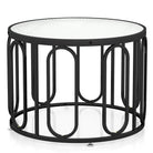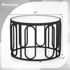 24 Inch Round Coffee Table with Reeded Tempered Glass Top and Oval Swivel Brackets-Black
