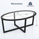 Spacious Oval Top: The glass coffee table boasts a generously sized top that provides ample room for drinks magazines and decorative items. The sleek curves of the oval design add a soft modern touch making it a perfect centerpiece for any room.