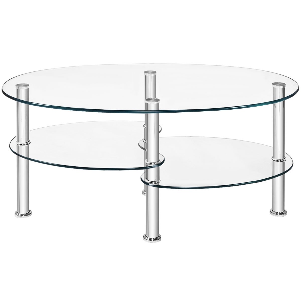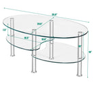 Modern and Compact Appearance: Glass coffee table comes with double shelves and irregularly boards. The oval shape looks modern and you can put your tea cups flowers and books on the first shelf the second shelf could used as storage shelf. It saves much space.