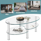Tempered Glass Oval Side Coffee Table-Transparent