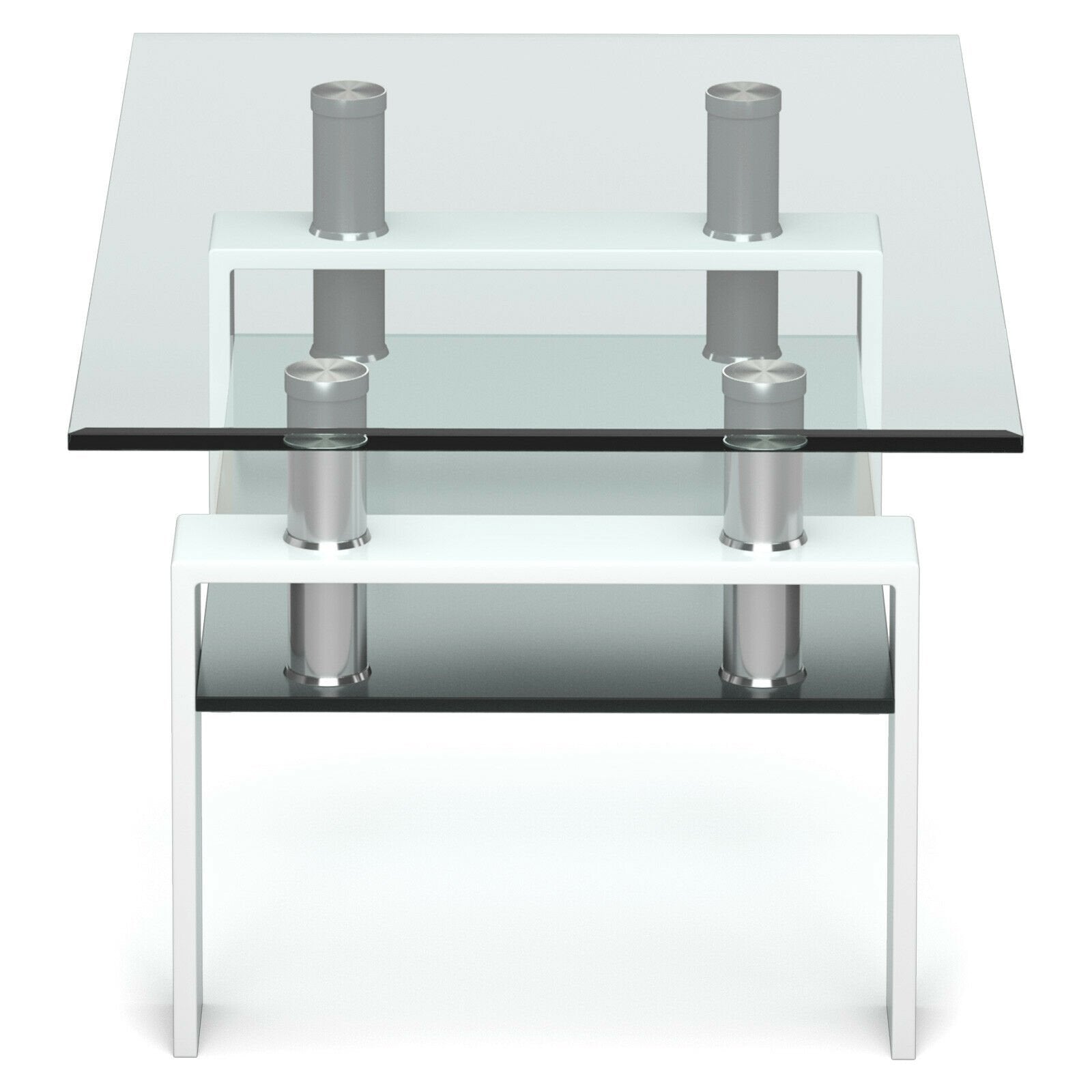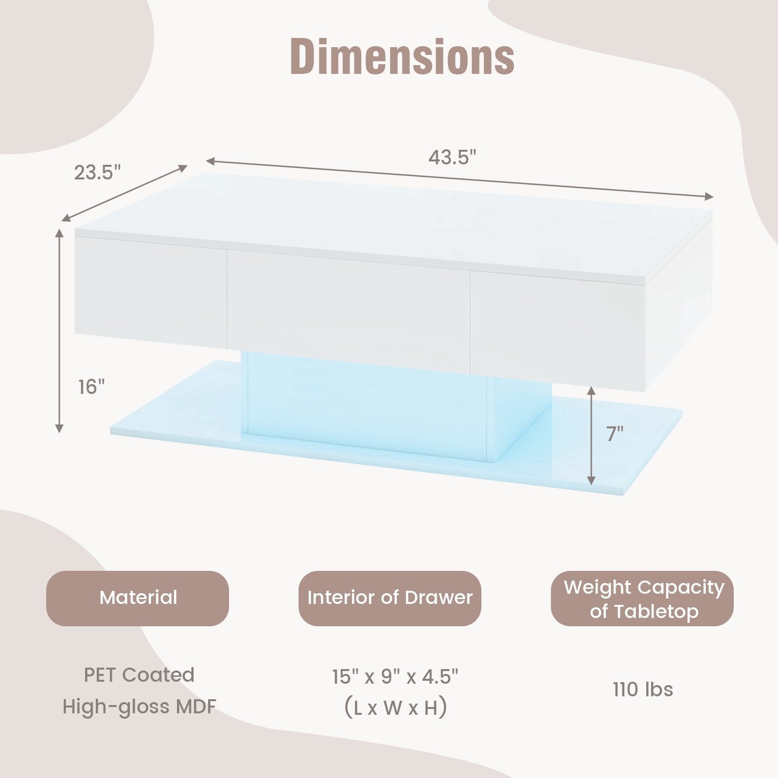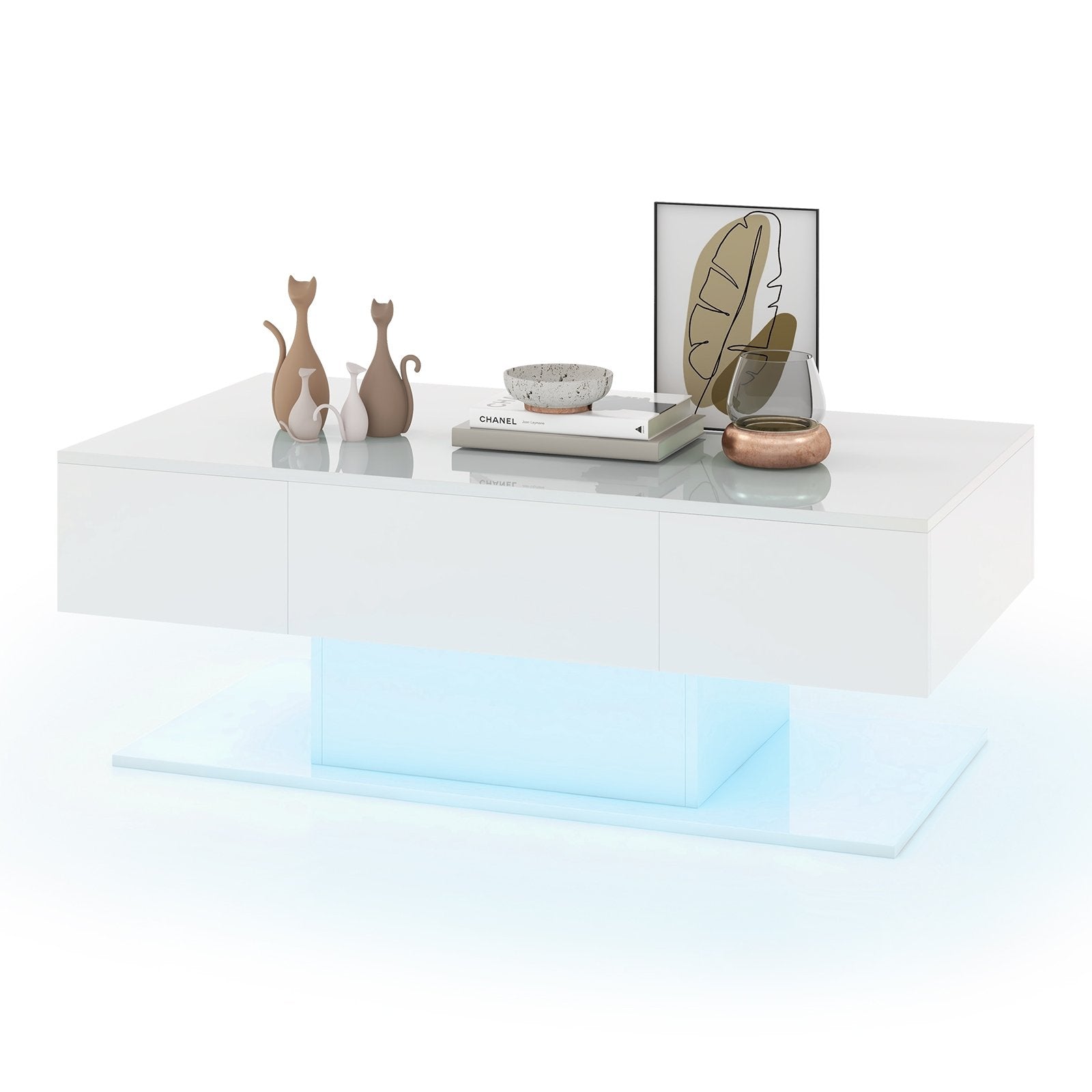 Modern 2-tier High Glossy Table with Adjustable Light Colors for Living Room-White