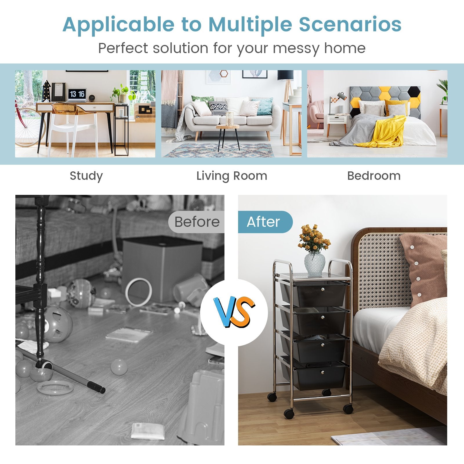 4-Drawer Cart Storage Bin Organizer Rolling with Plastic Drawers-Black