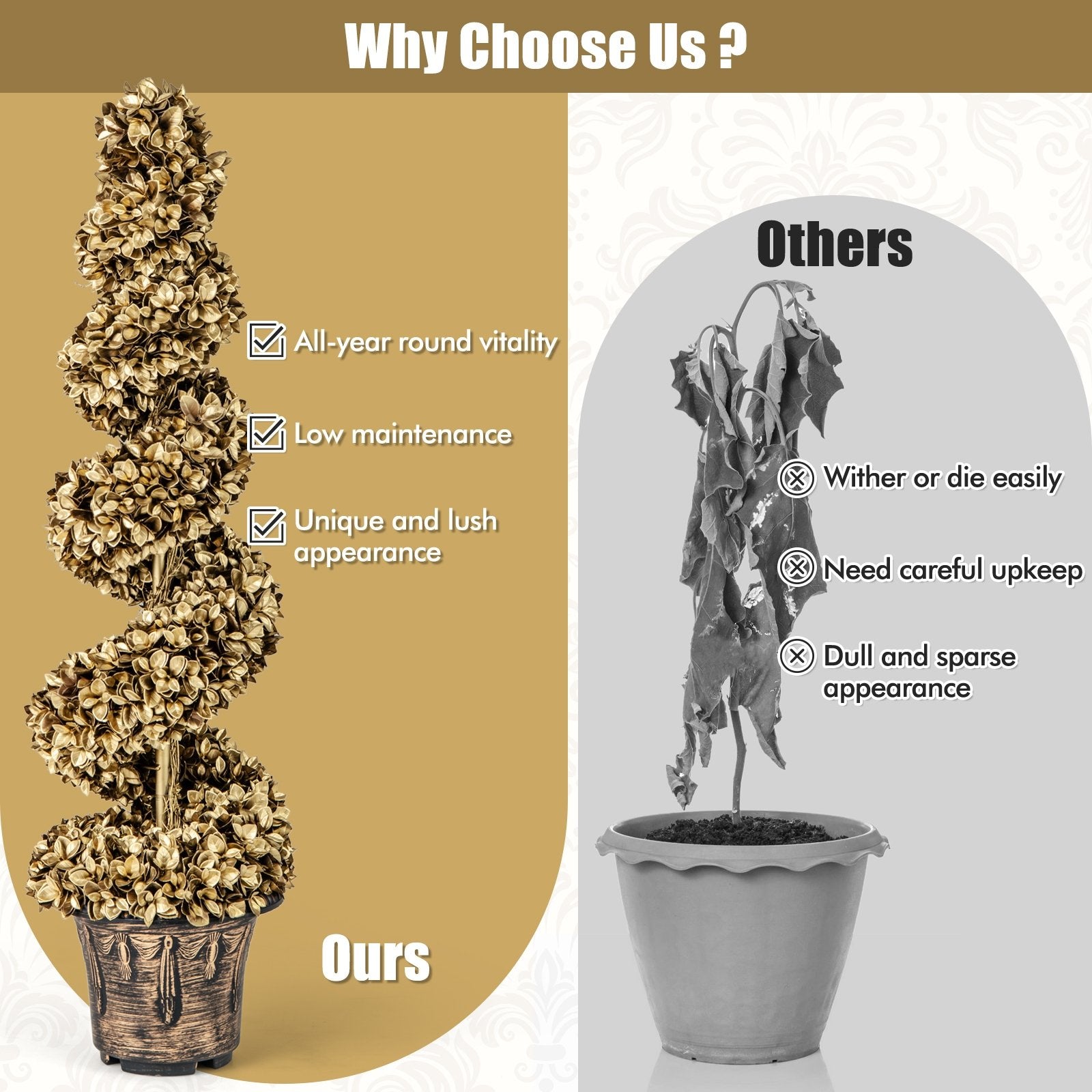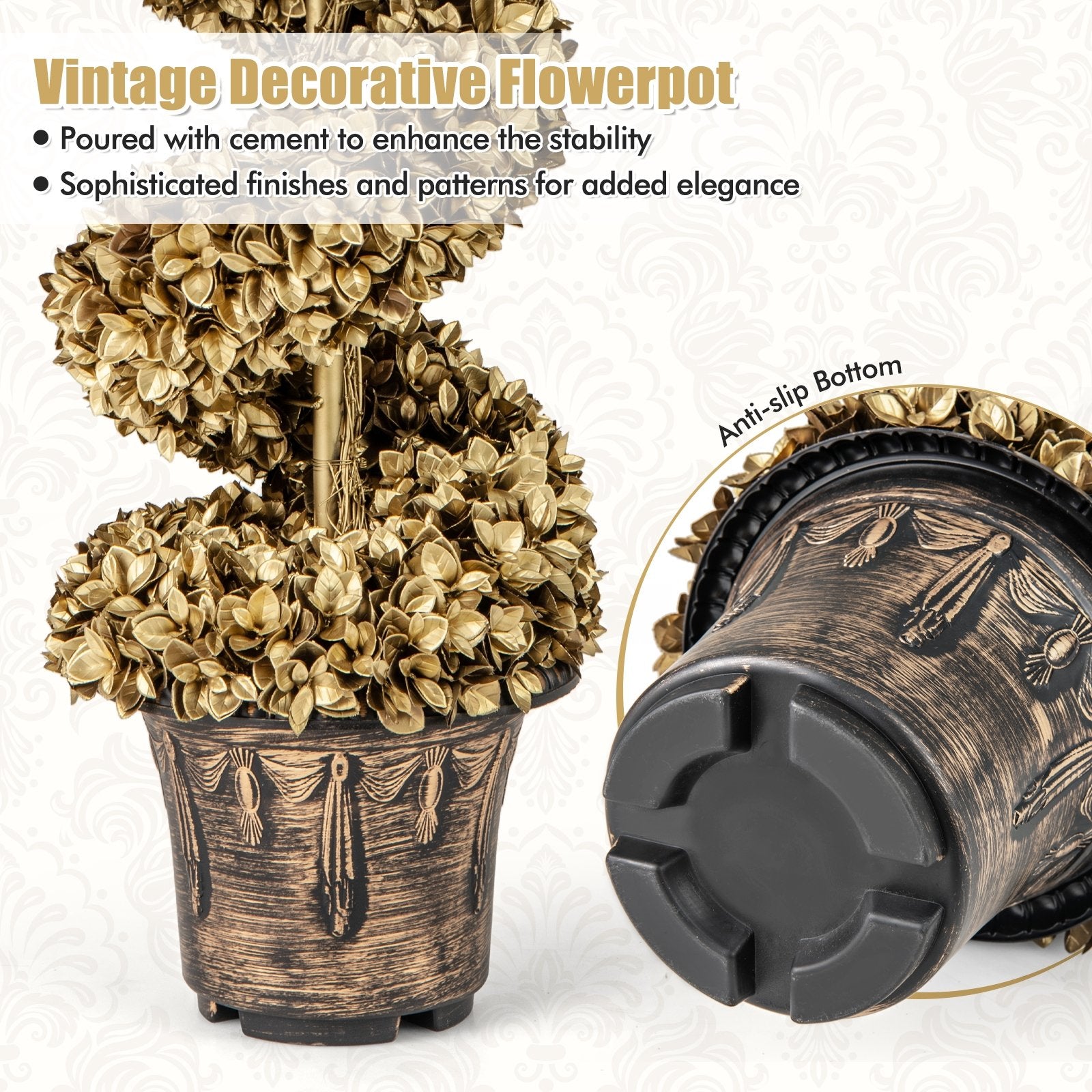 4 FT Artificial Topiary Spiral Tree Set of 2 with Vintage Plastic Nursery Pot-Gold