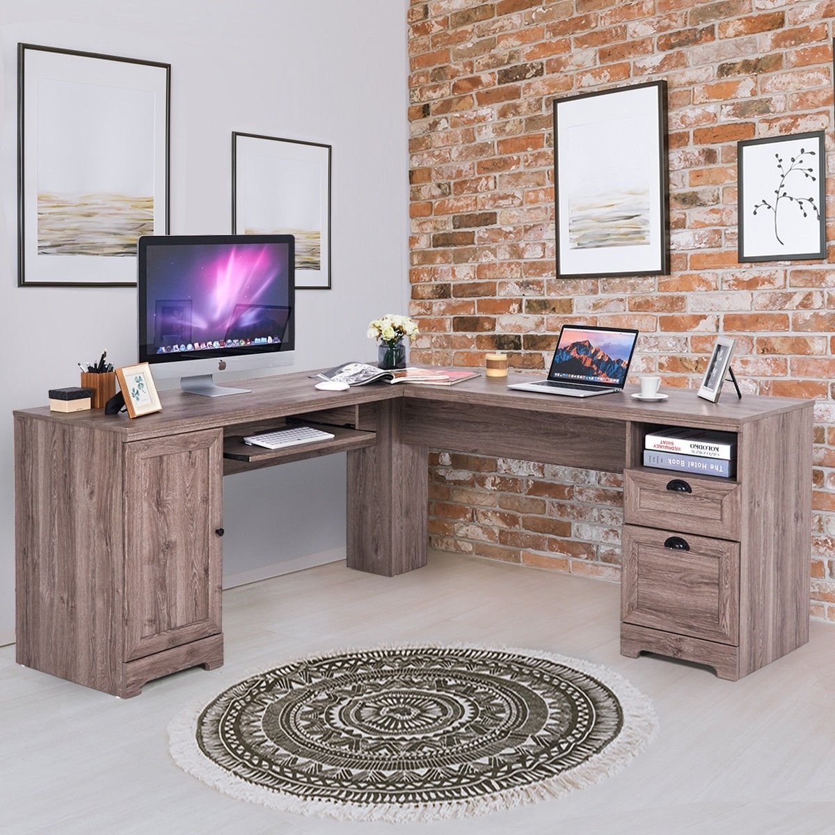 66 Inch L-Shaped Writing Study Workstation Computer Desk with Drawers-Gray