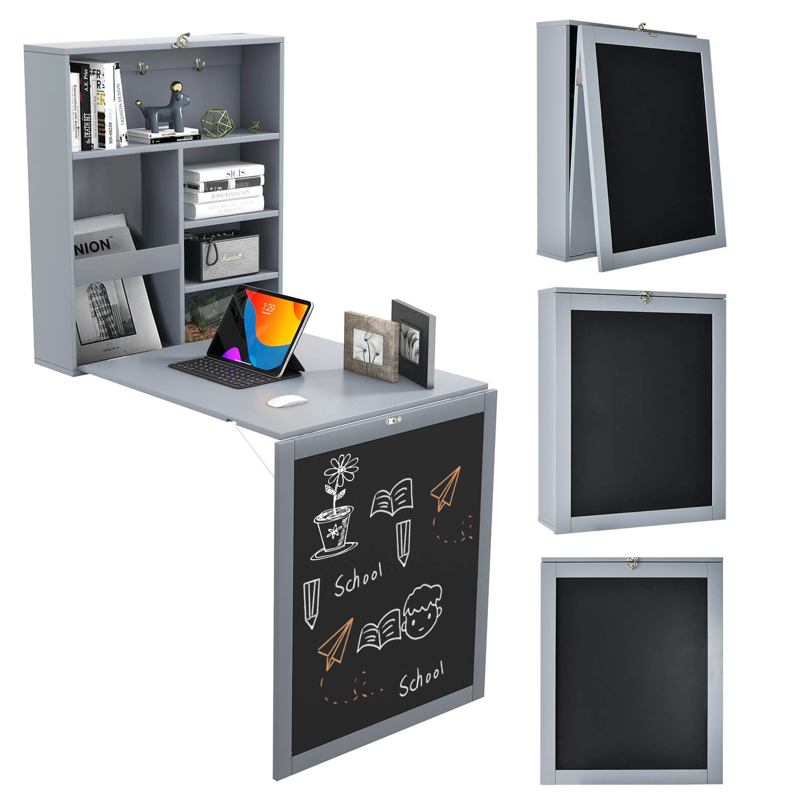 Convertible Wall Mounted Table with A Chalkboard-Gray