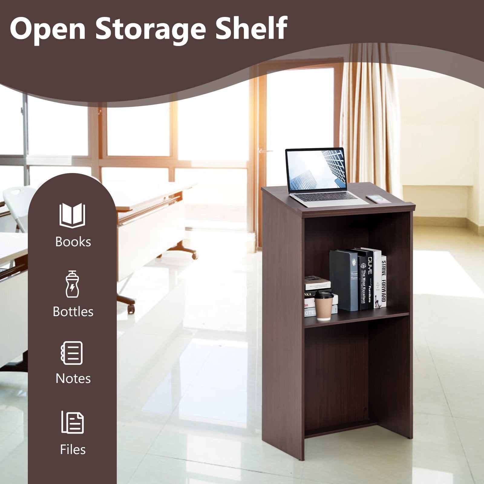 Easy to Assemble & Clean: Due to its waterproof and smooth surface the podium is easy to keep clean with a damp cloth. Meanwhile it is easy to assemble. Under the guidance of detailed instructions you can get a complete floor-standing podium in a short time.