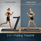 Innovative 2-In-1 Folding Treadmill: This folding treadmill has 2 exercise modes to meet your fitness requirements. The speed of running motion is 0.6-9 mph. You can also use it under the desk at a speed of 0.6-2.5 mph which is convenient for you to exercise while working at home or office.