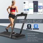 This electric treadmill with remote control provides 2 modes for your selection. One is walking motion (0.6 - 2.5 mph) and another is running motion (0.6 - 9 mph). Meanwhile there is an LED touch screen on the top and an LED display window at the bottom. Therefore you are able to walk or run conveniently. Besides the 5-layer anti-slip running belt and 2.25HP powerful motor make this running machine safe and noiseless. What's more you can connect to the Gymax APP via Bluetooth to explore different functions. Likewise the phone holder and Bluetooth speaker bring more interest while training. After exercising you can fold the treadmill into a compact size and move it easily with 2 built-in wheels.
