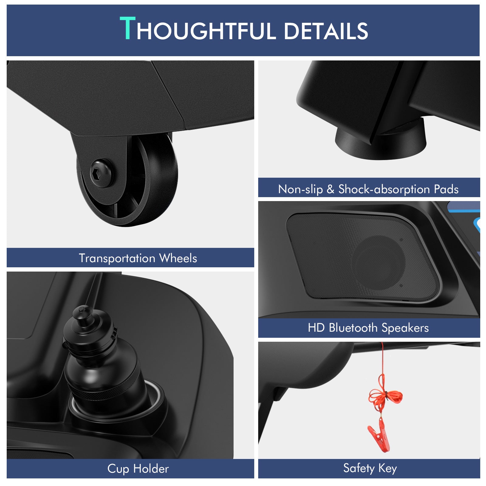 Running with Safety and Protection: There is a total of 7 layers in the running belt which makes it anti-slip and shock-absorbing to effectively cushion your legs and knees. Moreover a spacious running surface gives you plenty of room to run. After running you can put your hands on the pulse sensors to check your heart rate.