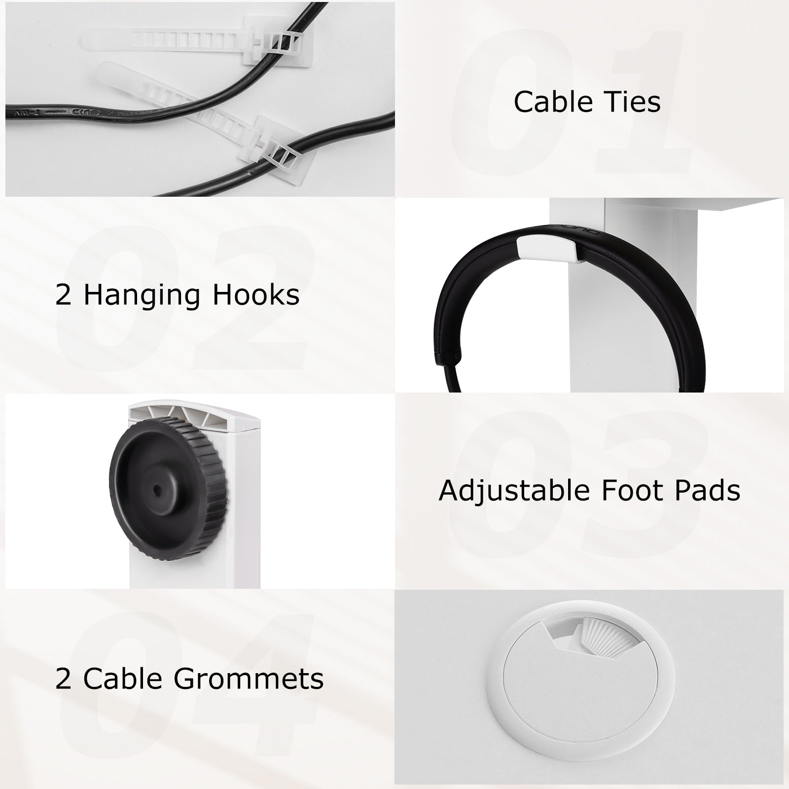 Organization Made Simple: Keep your workspace tidy and enhance productivity with 2 hanging hooks perfect for headphones or bags. And a cable management system including 2 cable grommets and cable ties neatly conceals wires.