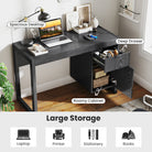 Modern Computer Desk Writing Workstation with Cabinet and Drawer-Black