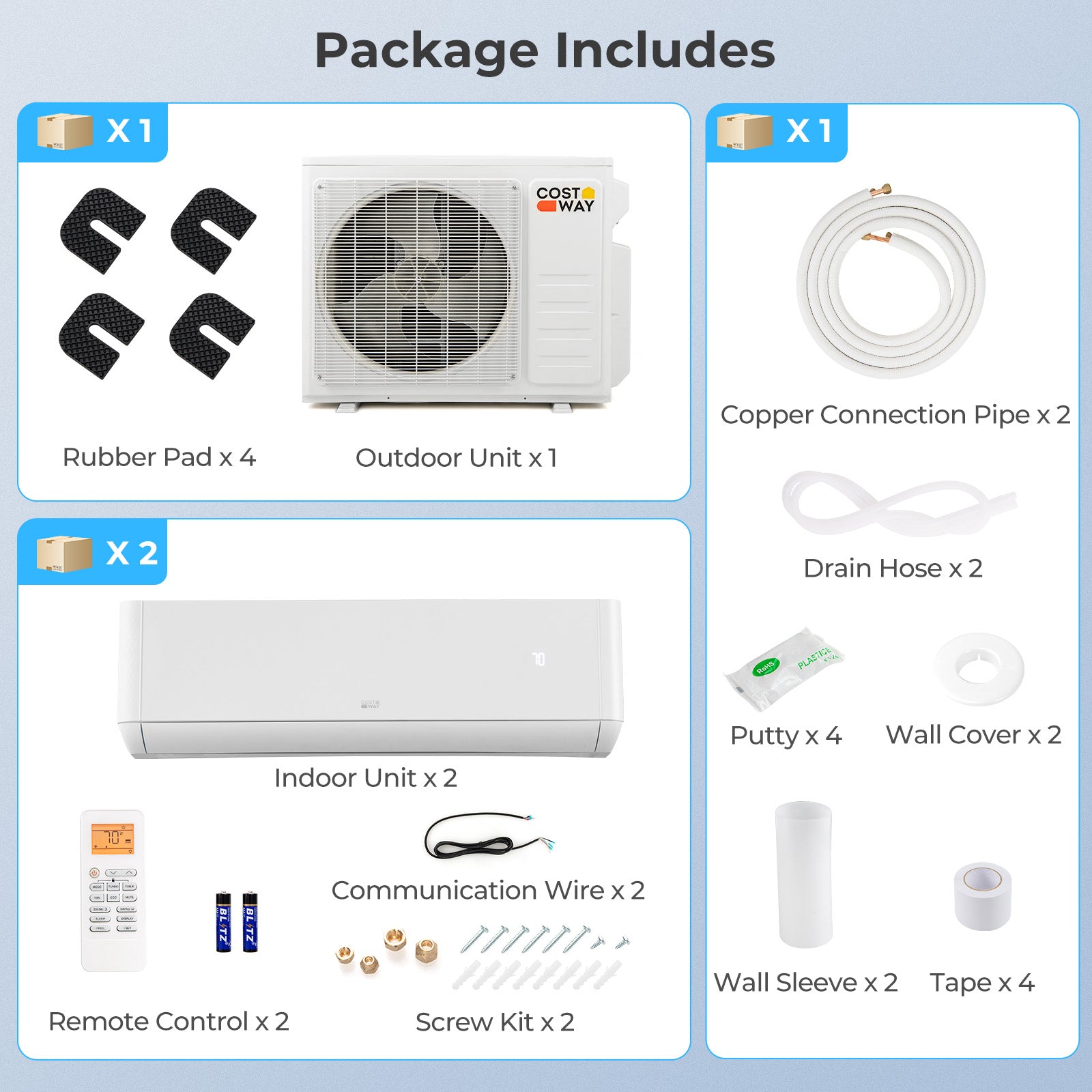 36000 BTU 2 Zone 21.5 SEER2 Mini Split AC with Heat Pump-12K + 12K