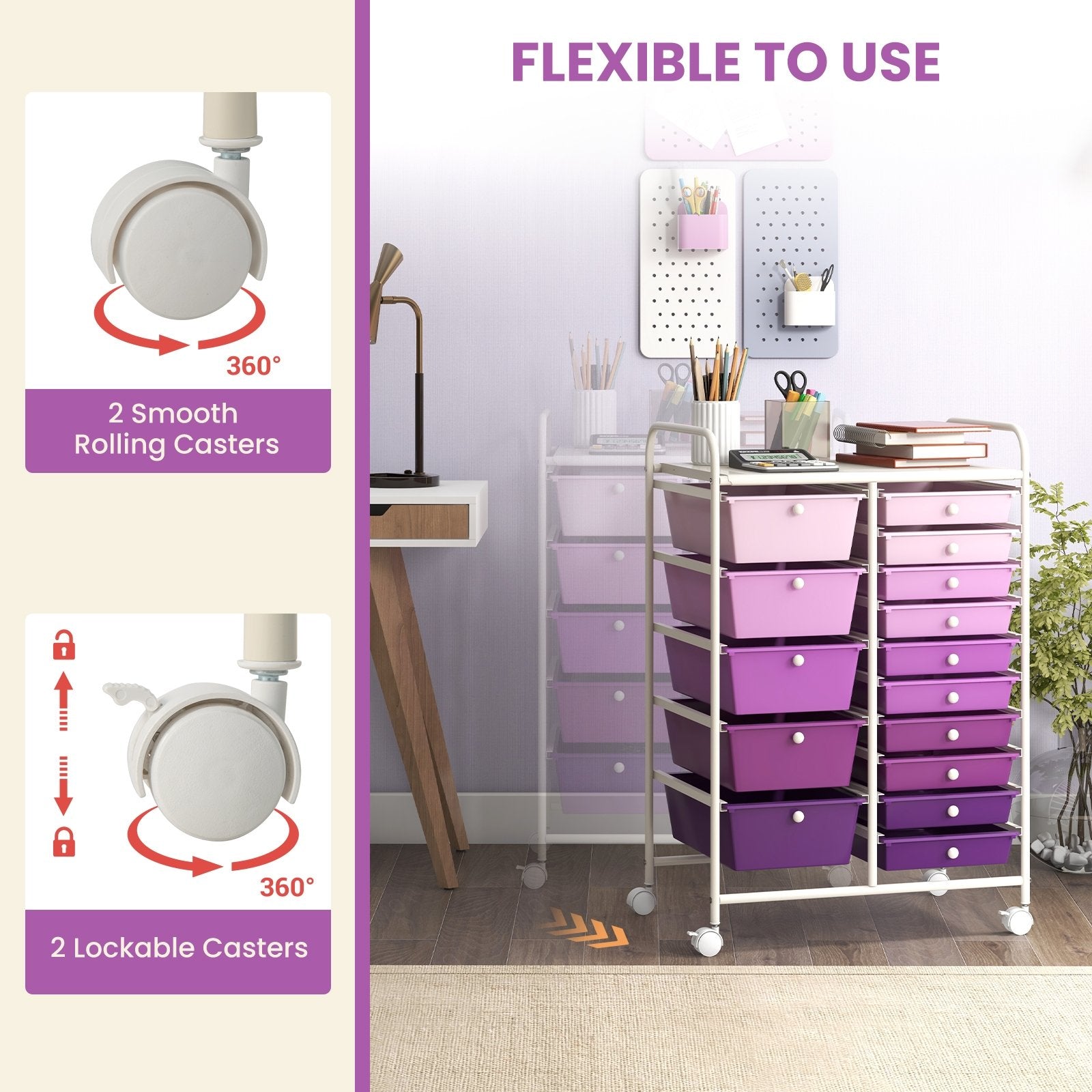 15-Drawer Utility Rolling Organizer Cart Multi-Use Storage-Purple
