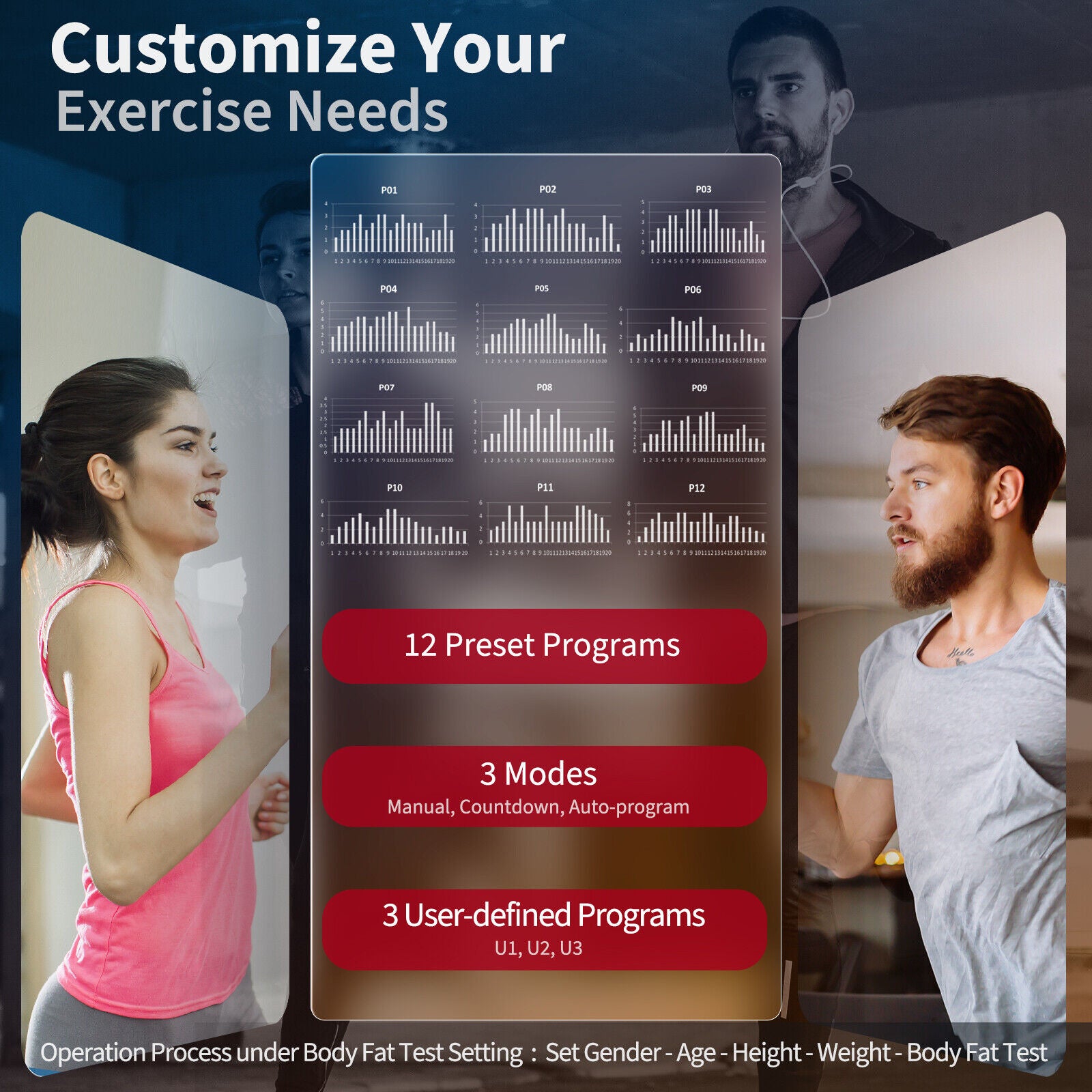 - Adjust the intensity of your workout with 12 preset programs 3 modes and 3 user-defined programs