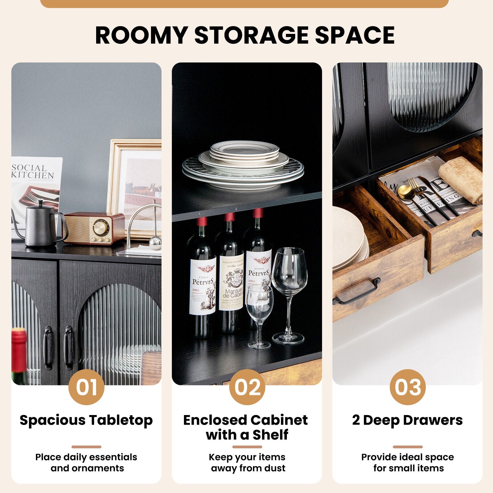 Sideboard Buffet Cabinet with 2 Drawers and 4 Adjustable Shelves-Black